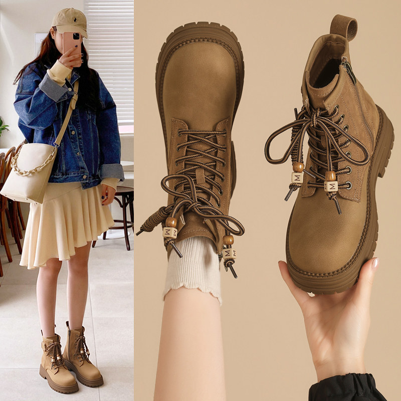 星期六英伦风复古马丁靴女厚底2025冬季巨好看加绒女鞋子中筒棉靴