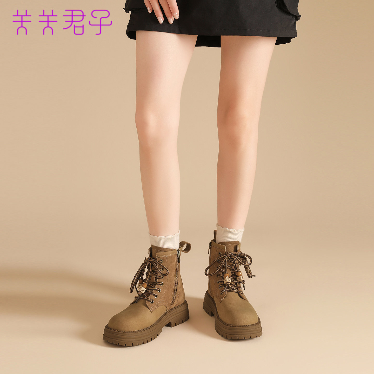 红蜻蜓卡皮巴拉baby同款马丁靴2025秋冬新款女鞋厚底增高英伦靴子