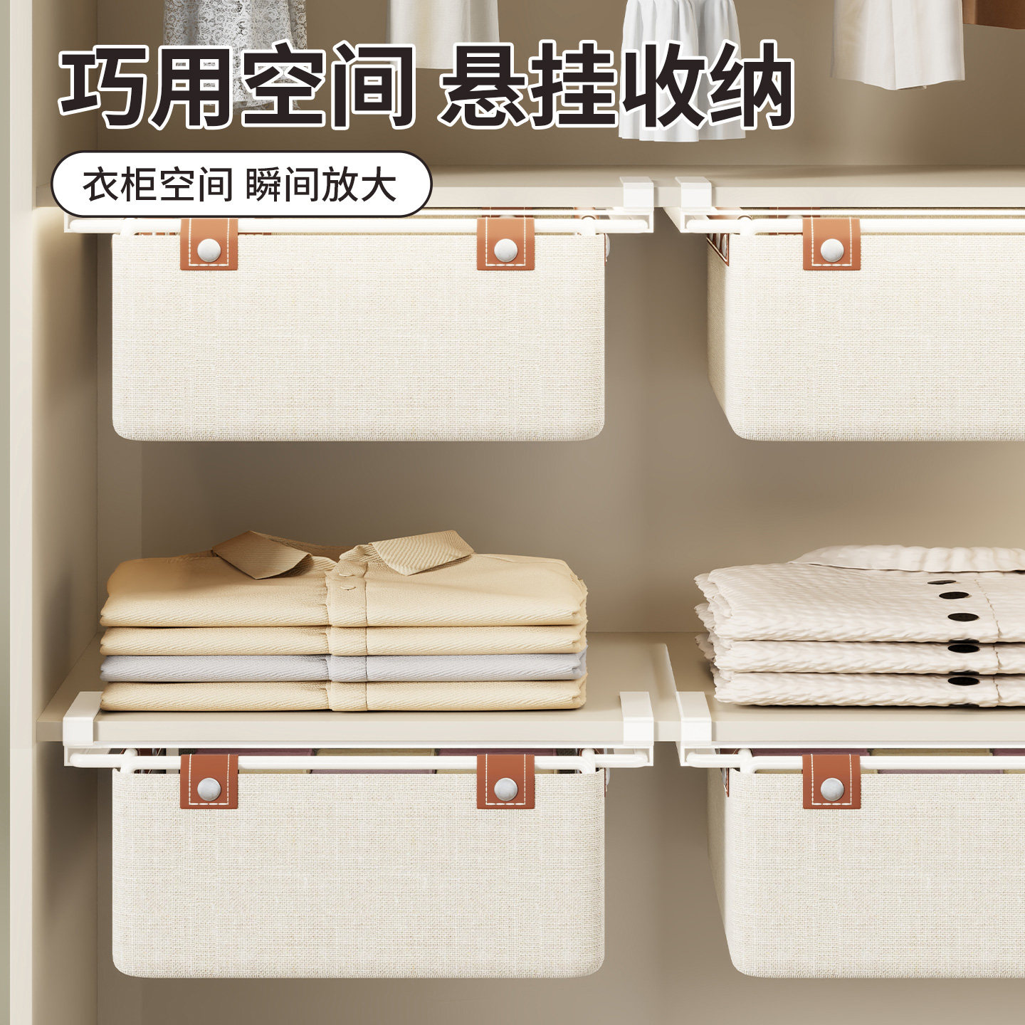 衣柜分层神器衣服收纳箱可水洗家用裤子整理盒筐布艺折叠储物箱