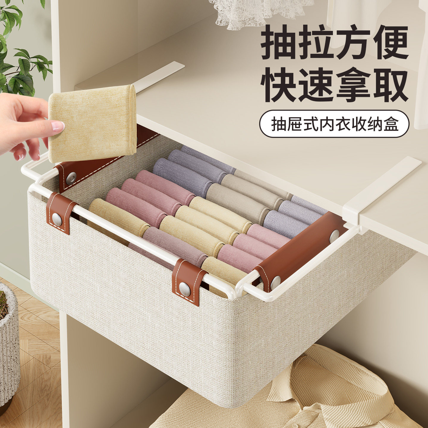 内衣收纳盒贴身衣物抽屉式整理盒卧室衣柜悬挂式分层分隔收纳神器