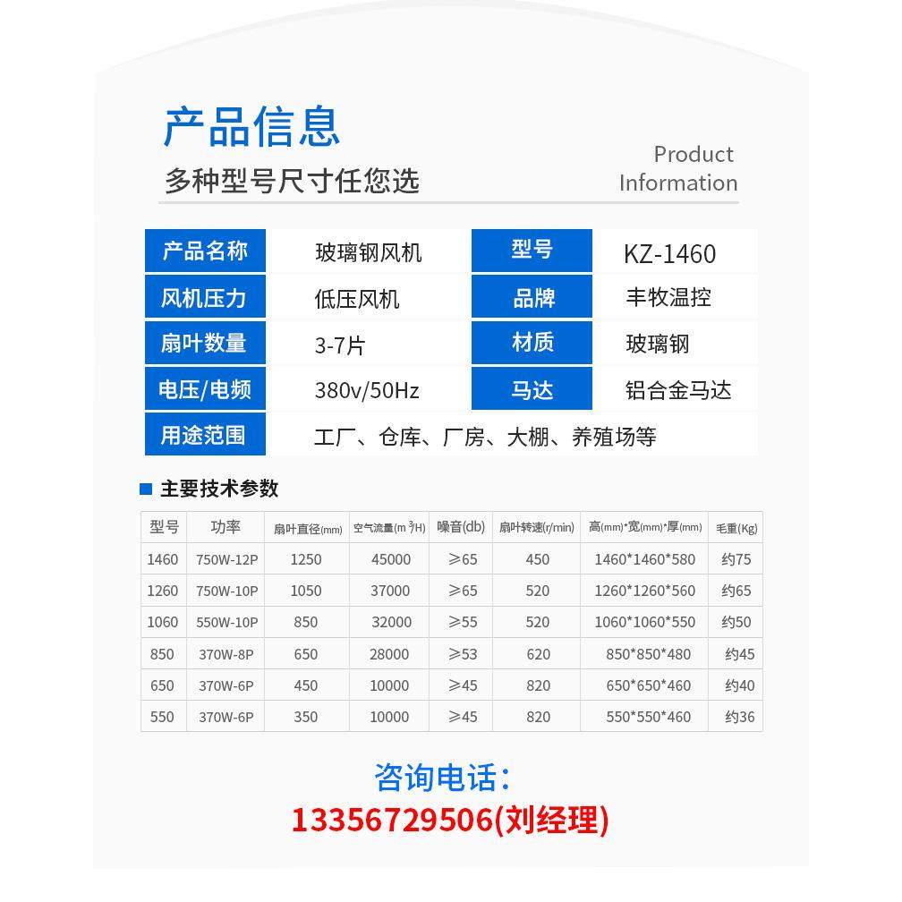 玻璃钢负压风机畜牧养殖工厂降温静音大风量排风扇1460