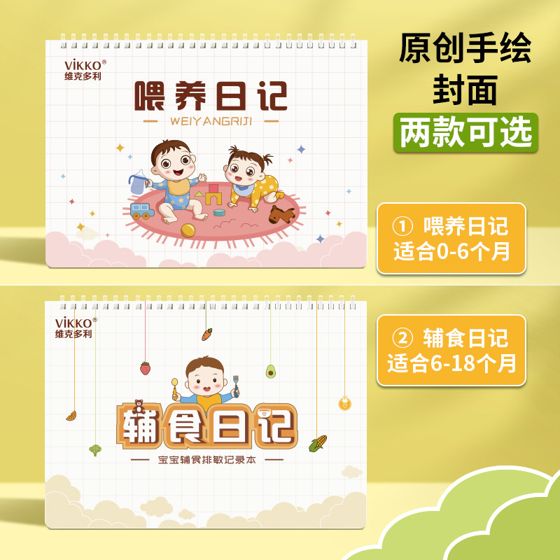 维克多利2026新款16k上翻软线圈喂养日记辅食日记适合0-1岁宝宝专属记录月嫂宝妈成长喂养表格记录手册日志