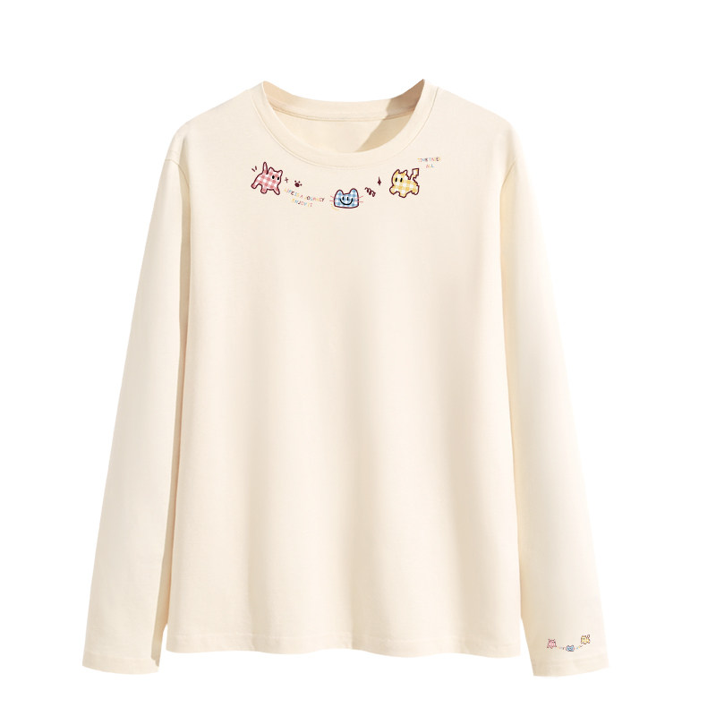 三福长袖上衣女2025新款秋冬季圆领内搭打底衫修身白色t恤女装