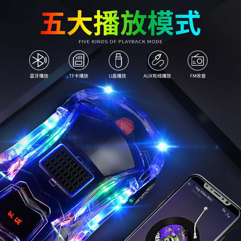 爱香汀 WS-980跑车模型低音炮无线蓝牙音箱双喇音量炫酷七彩灯重