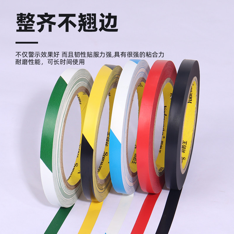10mm宽PVC定位胶带桌面地面黑黄色警示胶带加厚防水耐磨5s管理分区标识贴纸厨房车间区域划分彩色地板警示线