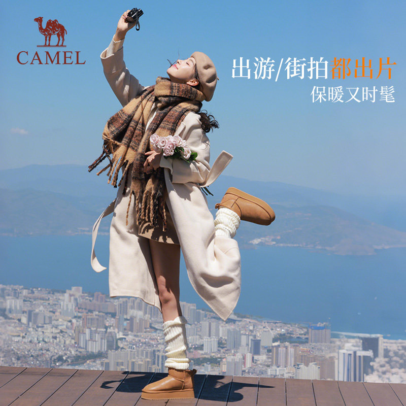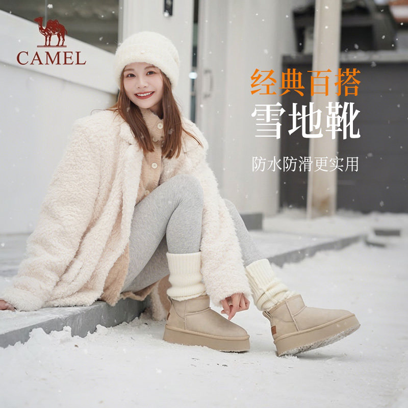 骆驼雪地靴女2025新款冬季加绒保暖棉鞋短靴厚底防滑防水东北棉靴