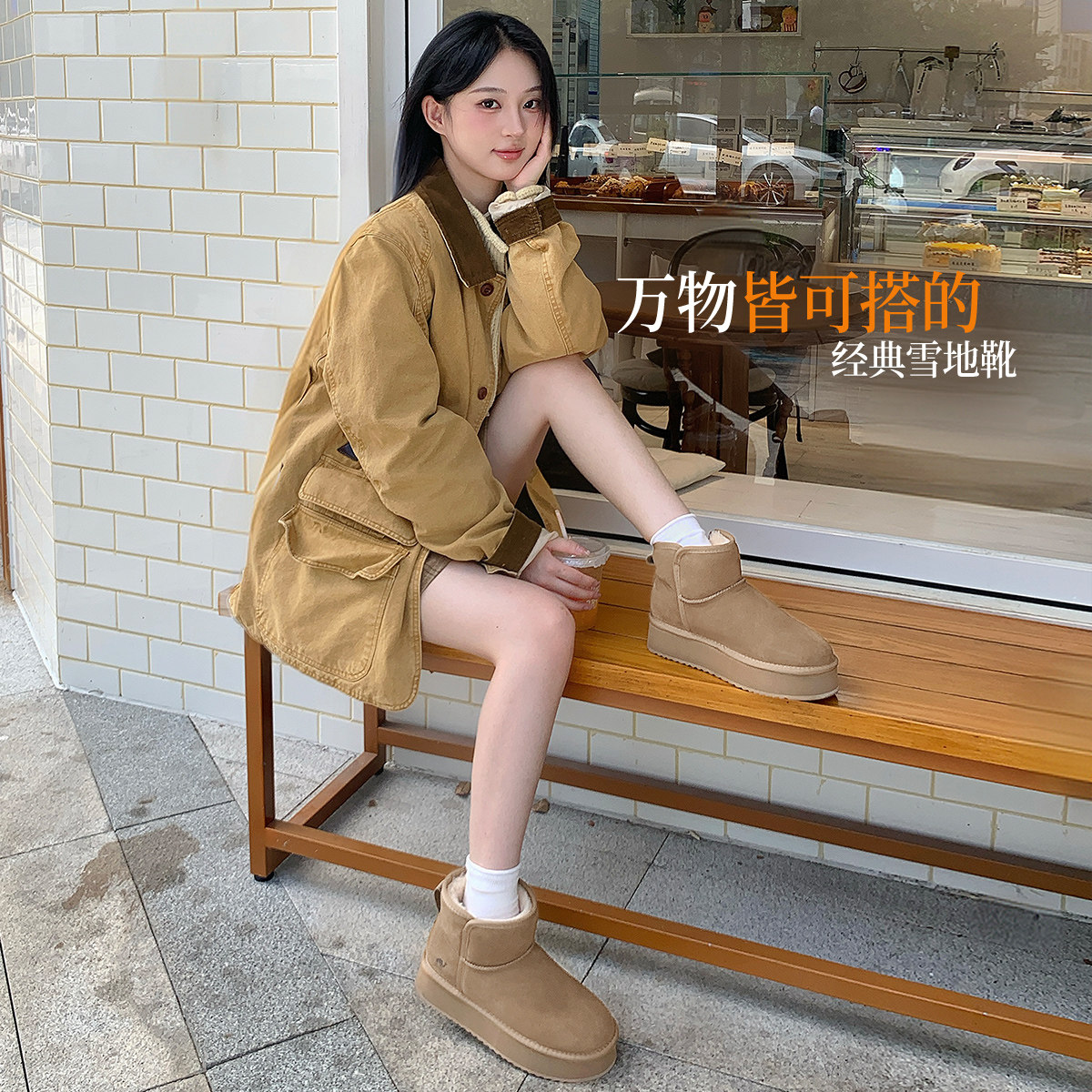 油叽叽~真皮羊毛雪地靴女冬季加绒加厚保暖棉靴厚底增高短筒靴子