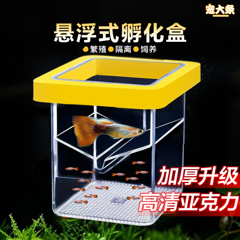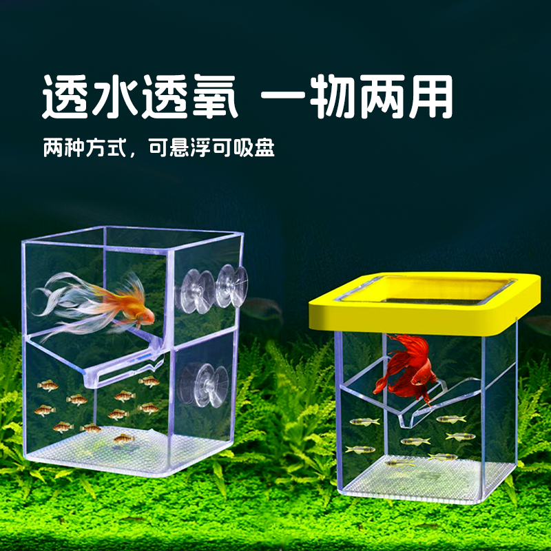 增氧双层孵化盒悬浮式繁殖盒隔离孔雀鱼高清透明鱼缸躲避屋固定