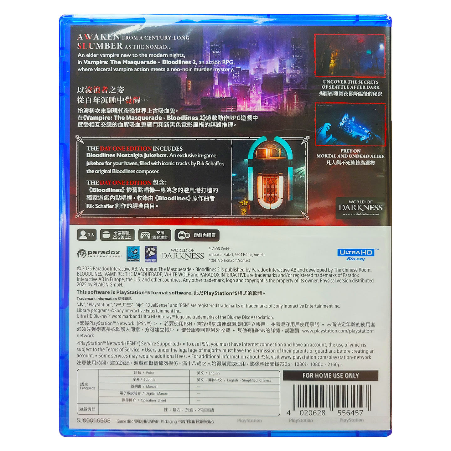 香港直邮 PS5游戏光盘 港版中文原封 吸血鬼避世血族2 PS5游戏 现货