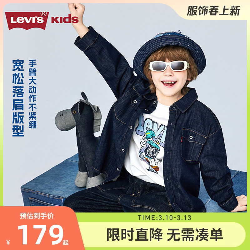 Levis李维斯儿童牛仔衬衫外套夹克2026春装新款男童女童衬衣童装