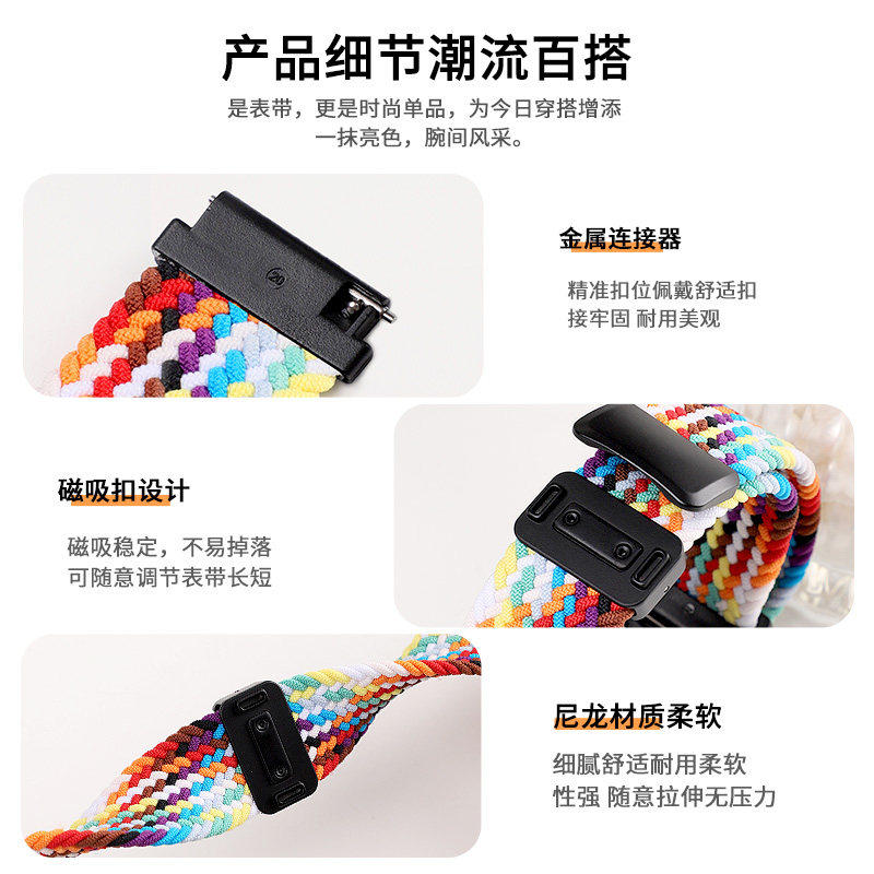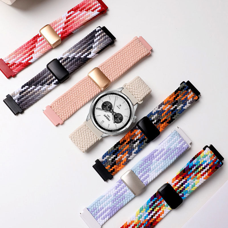 适用小米WatchS5手表表带s4磁吸编织回环s4sportS3/S2透气腕带color2运动s1pro智能2pro男女尼龙绿色彩虹黑色