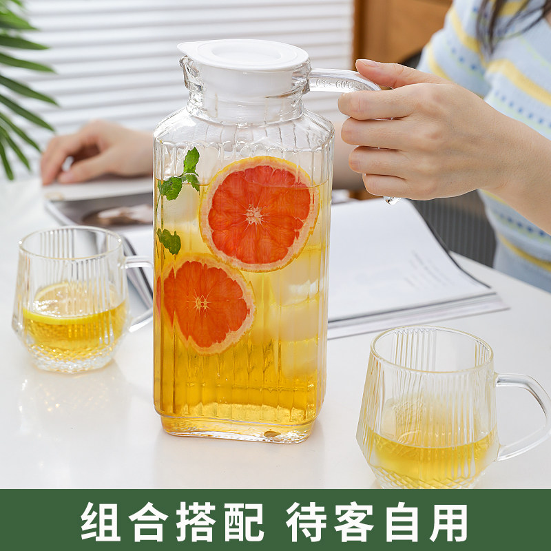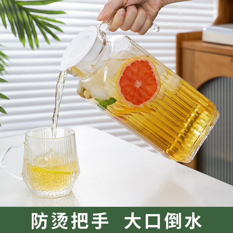 中式风格耐高温冷水壶玻璃扎壶配件1800ml大容量水果茶冰箱开水