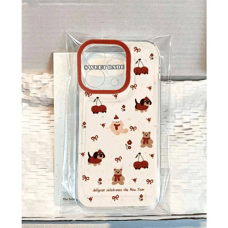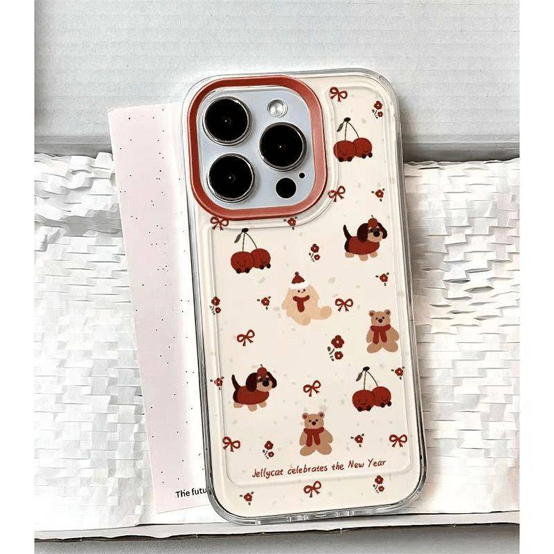 可爱卡通小熊樱桃适用iPhone苹果17pro手机壳时尚16e/15plus/12promax/14/13/11小米vivo华为oppo保护套外壳