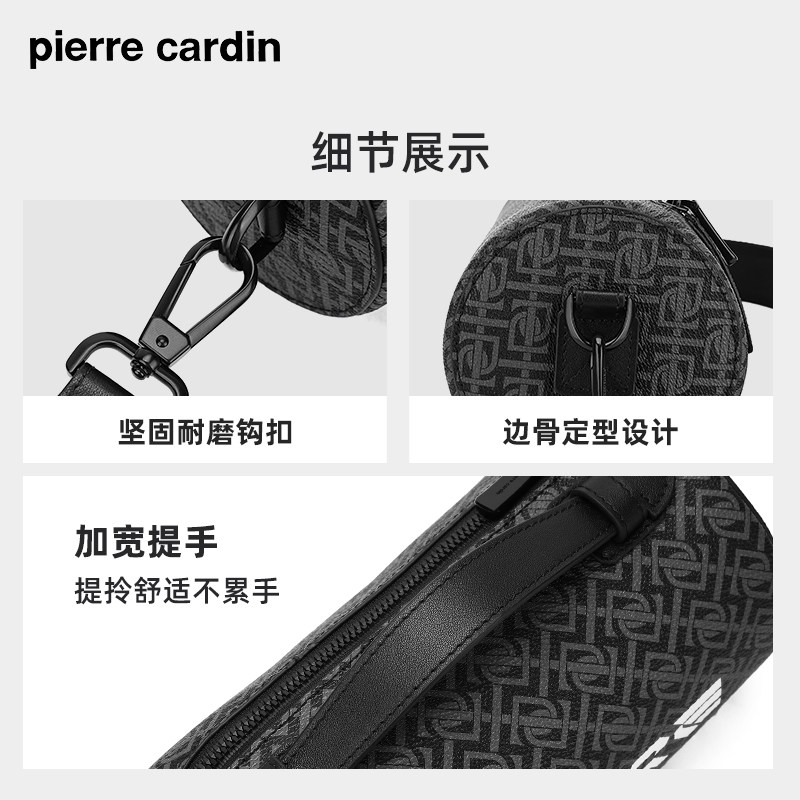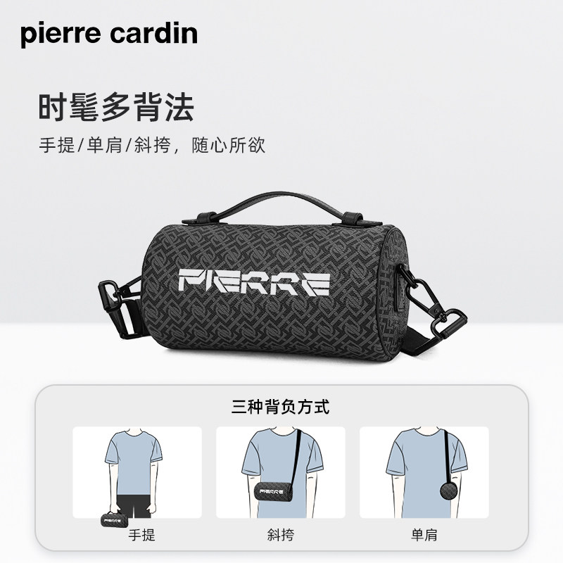 皮尔卡丹通勤背包斜挎包男款单肩包邮差包超轻工装PVC老花斜挎包