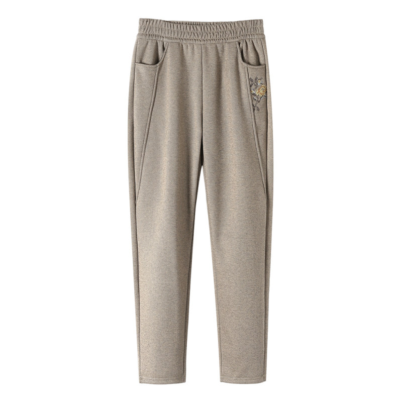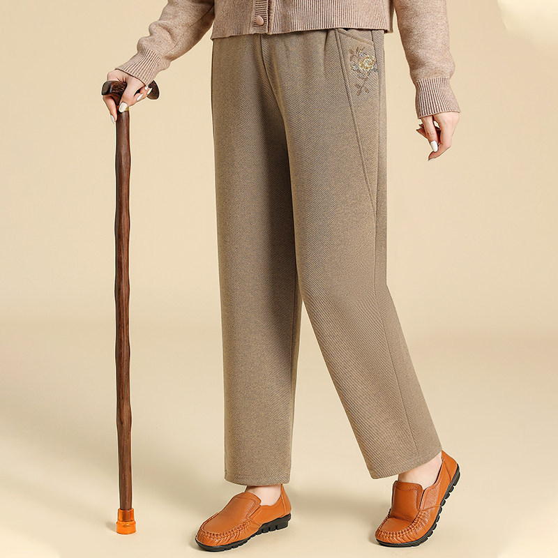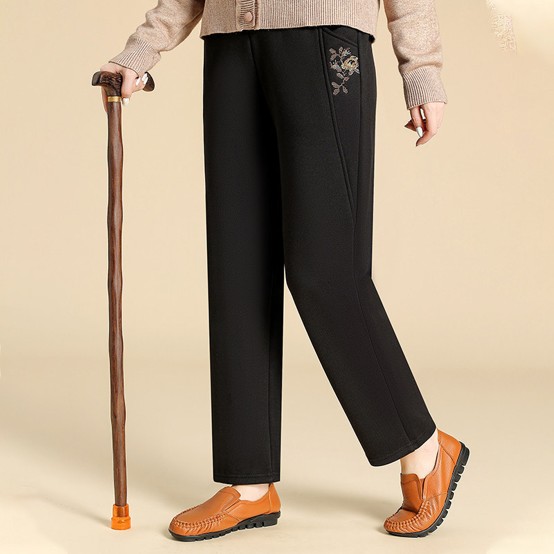 中老年人女裤秋冬加绒长裤外穿妈妈裤子宽松直筒高腰奶奶春秋大码