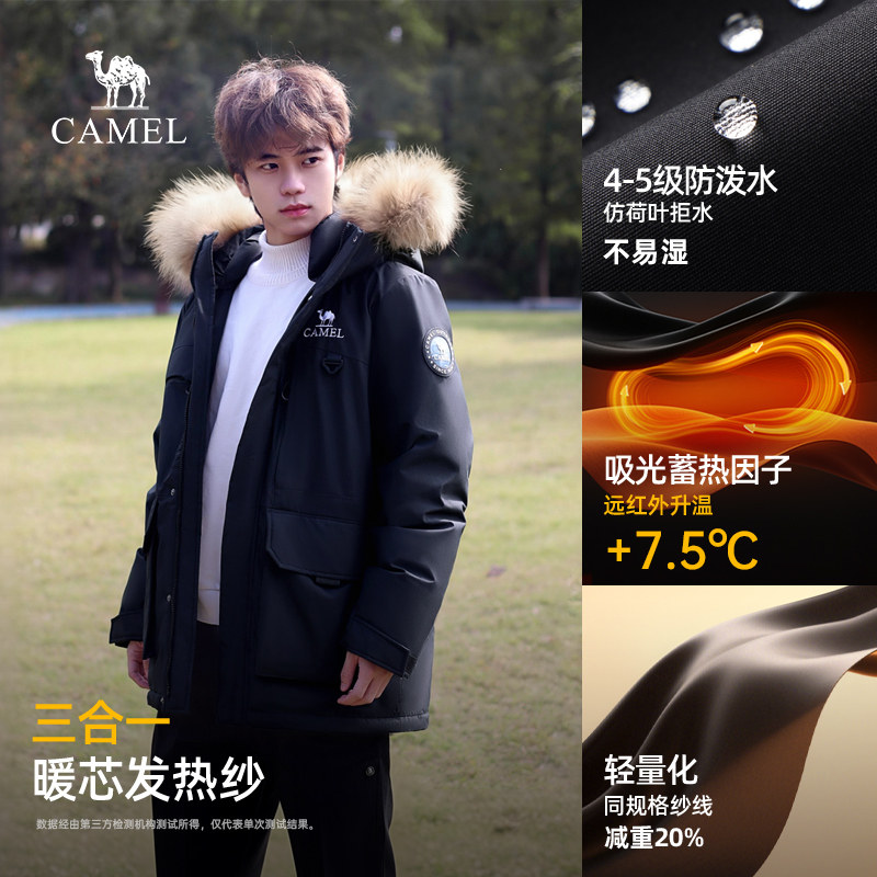 骆驼黑钻5男装羽绒服秋冬加厚保暖鸭绒外套防水防风面包服户外男