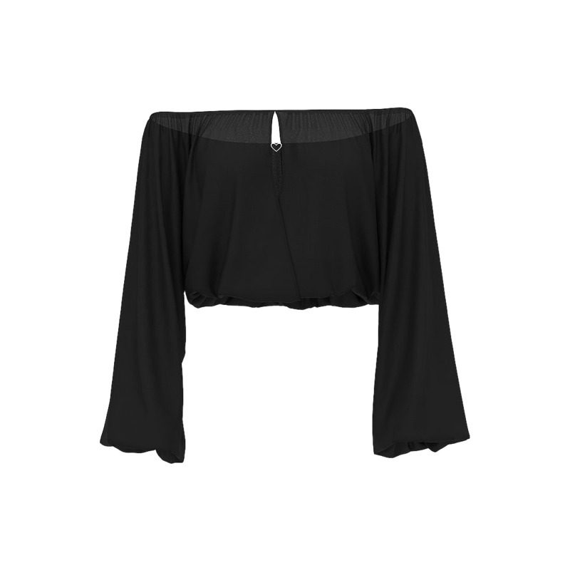 露肩剪裁结合锁眼缕空与闪亮心形挂饰