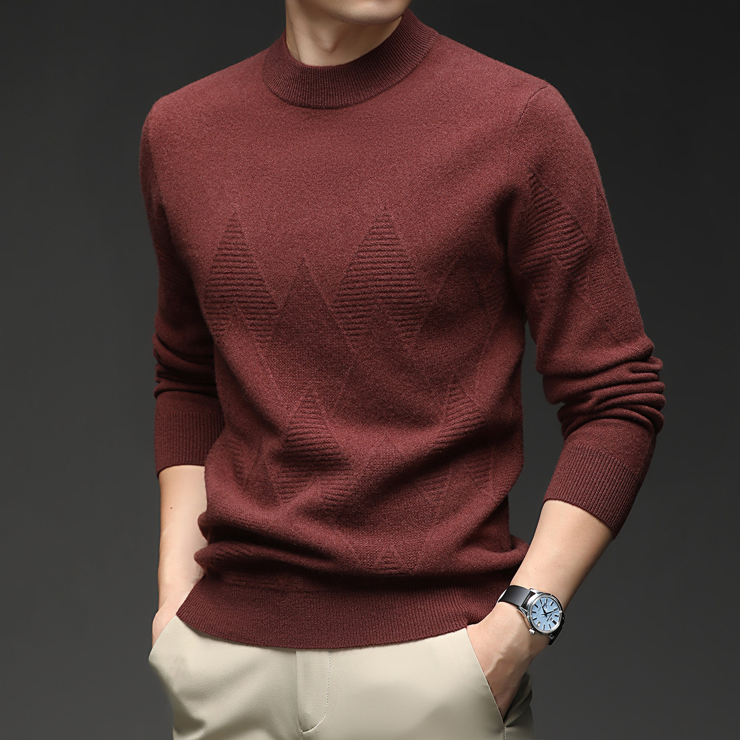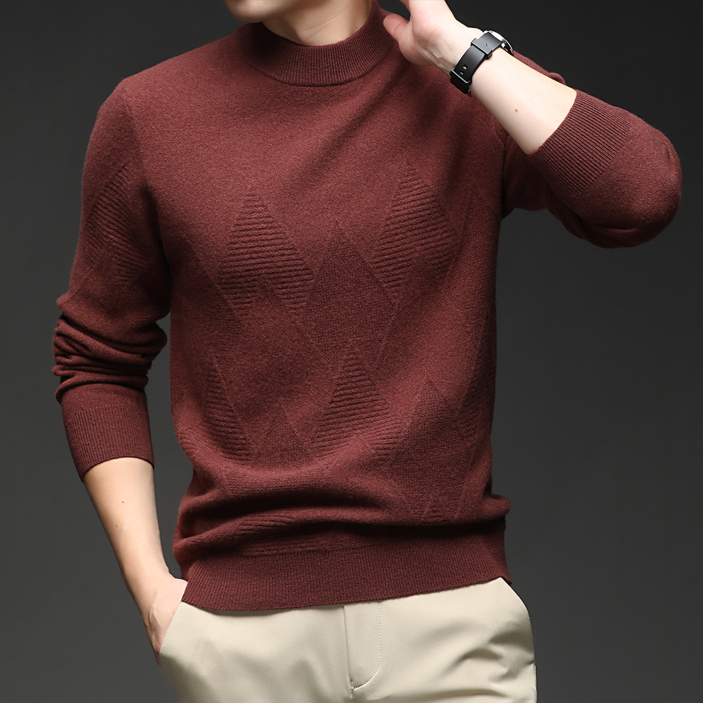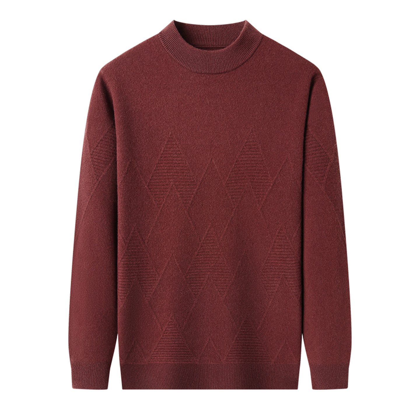 红蜻蜓男士加绒加厚圆领毛衣冬季新款针织提花爸爸冬装内搭打底衫