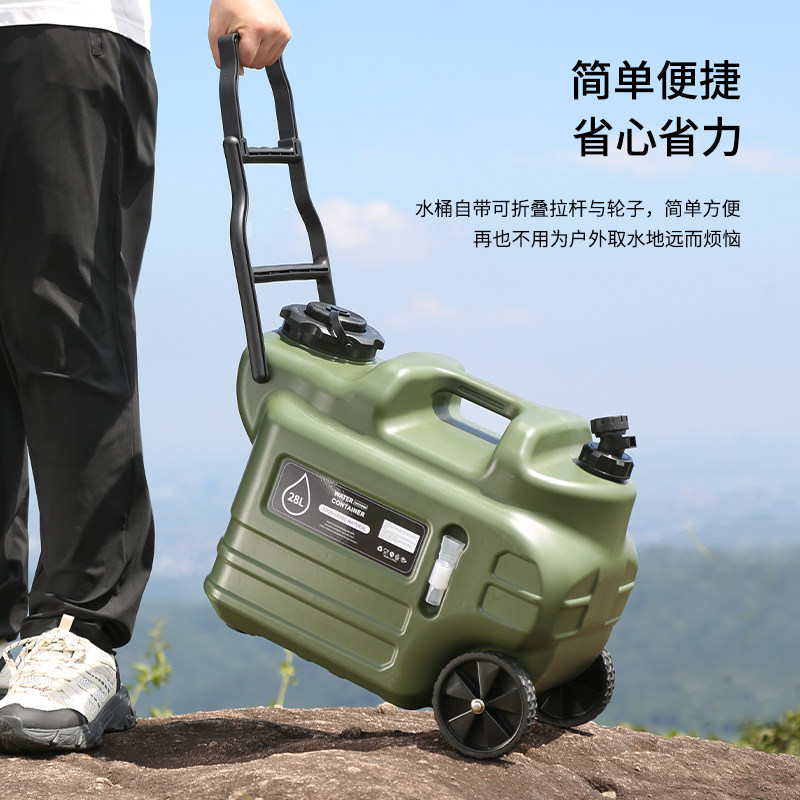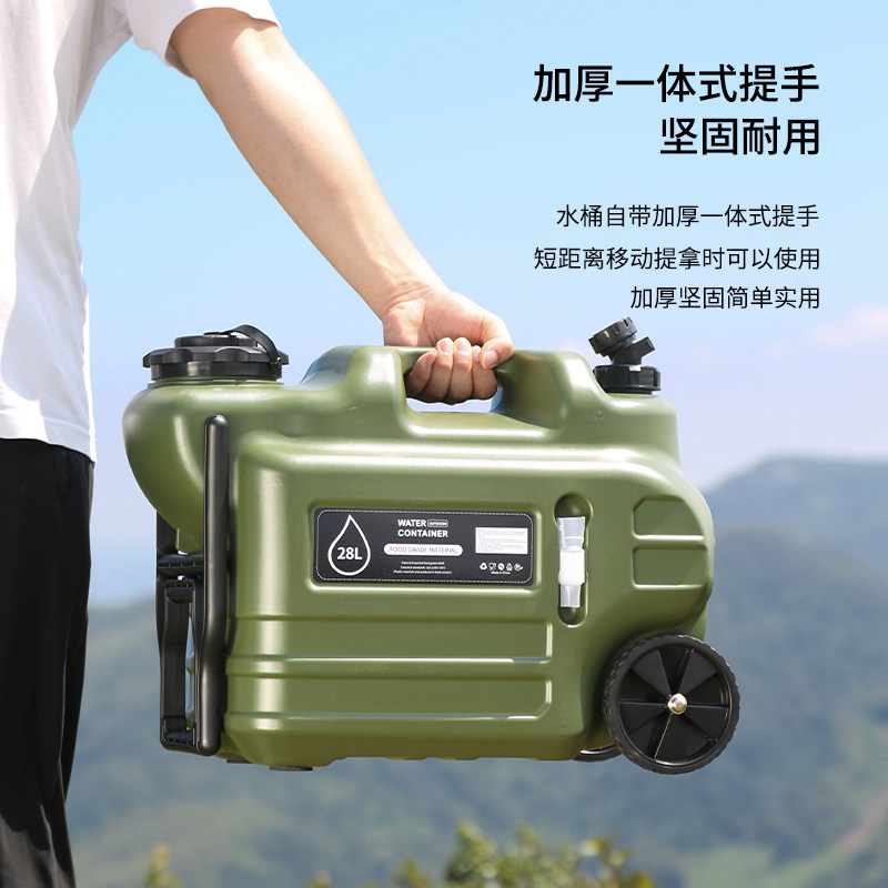 户外纯净水桶PE水桶带拉杆轮子车载露营便携手提水箱食品级储水桶