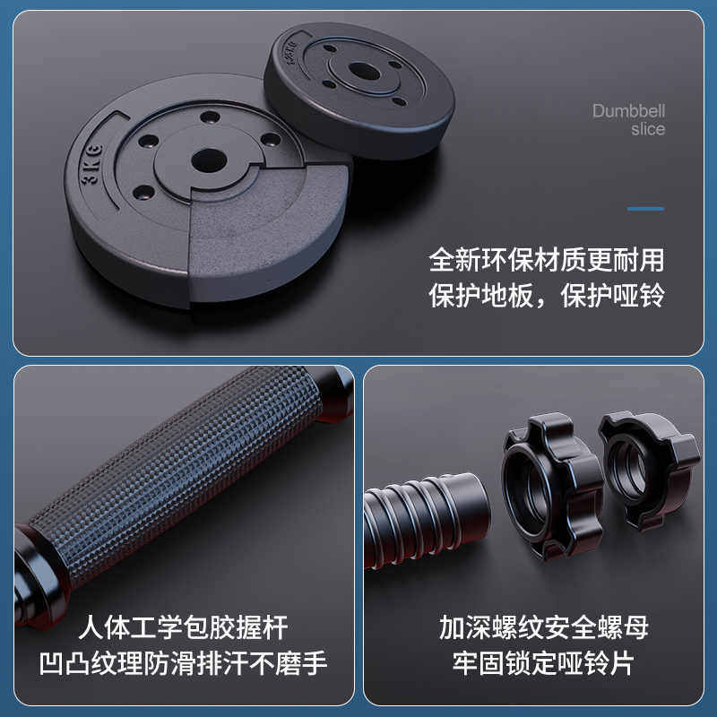 哑铃男士家用健身器材环保杠铃哑铃套装可调节举重初学可拆卸亚玲