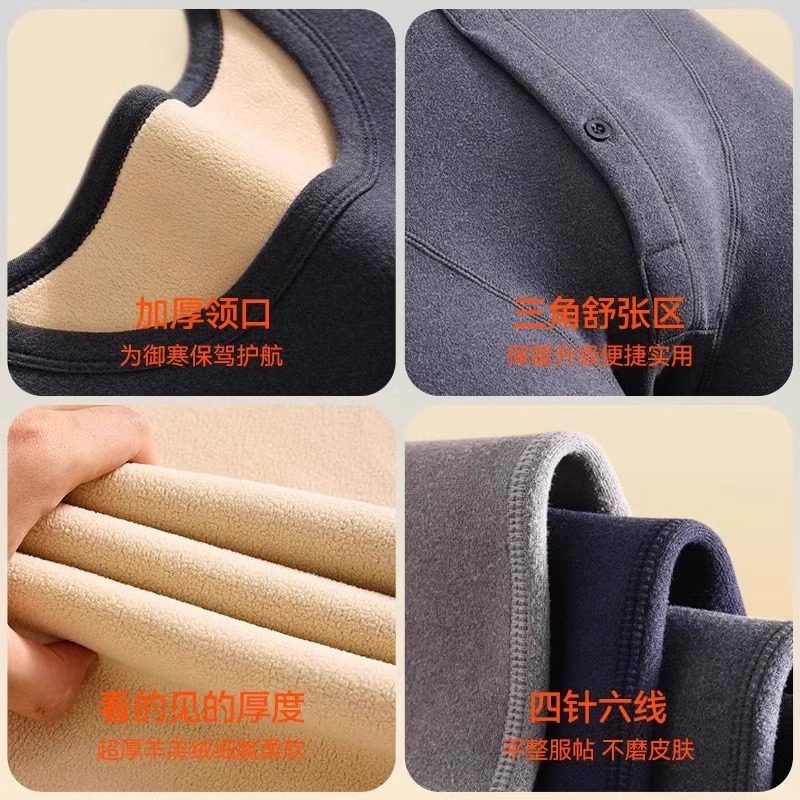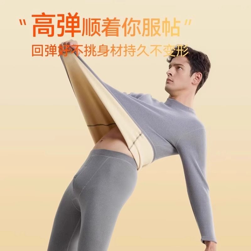 中高领保暖内衣男士加绒加厚套装大码德暖绒秋衣秋裤打底棉毛衫冬