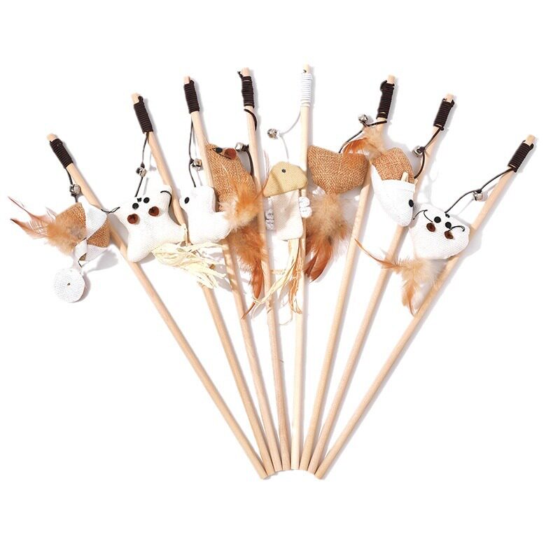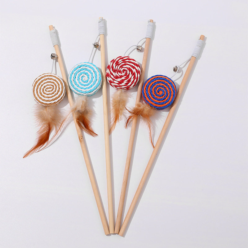 猫玩具棉麻木杆逗猫棒自嗨猫咪玩具弹力绳实木逗猫杆宠物多规格起