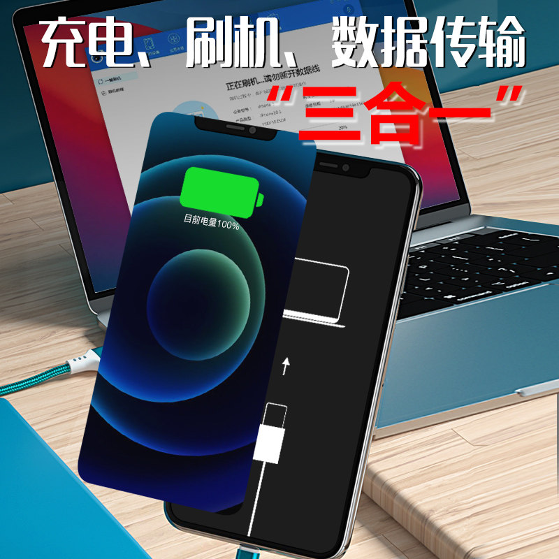 蚂蚁昕三合一刷机数据线苹果15全兼容免换线自动恢复充电传输线