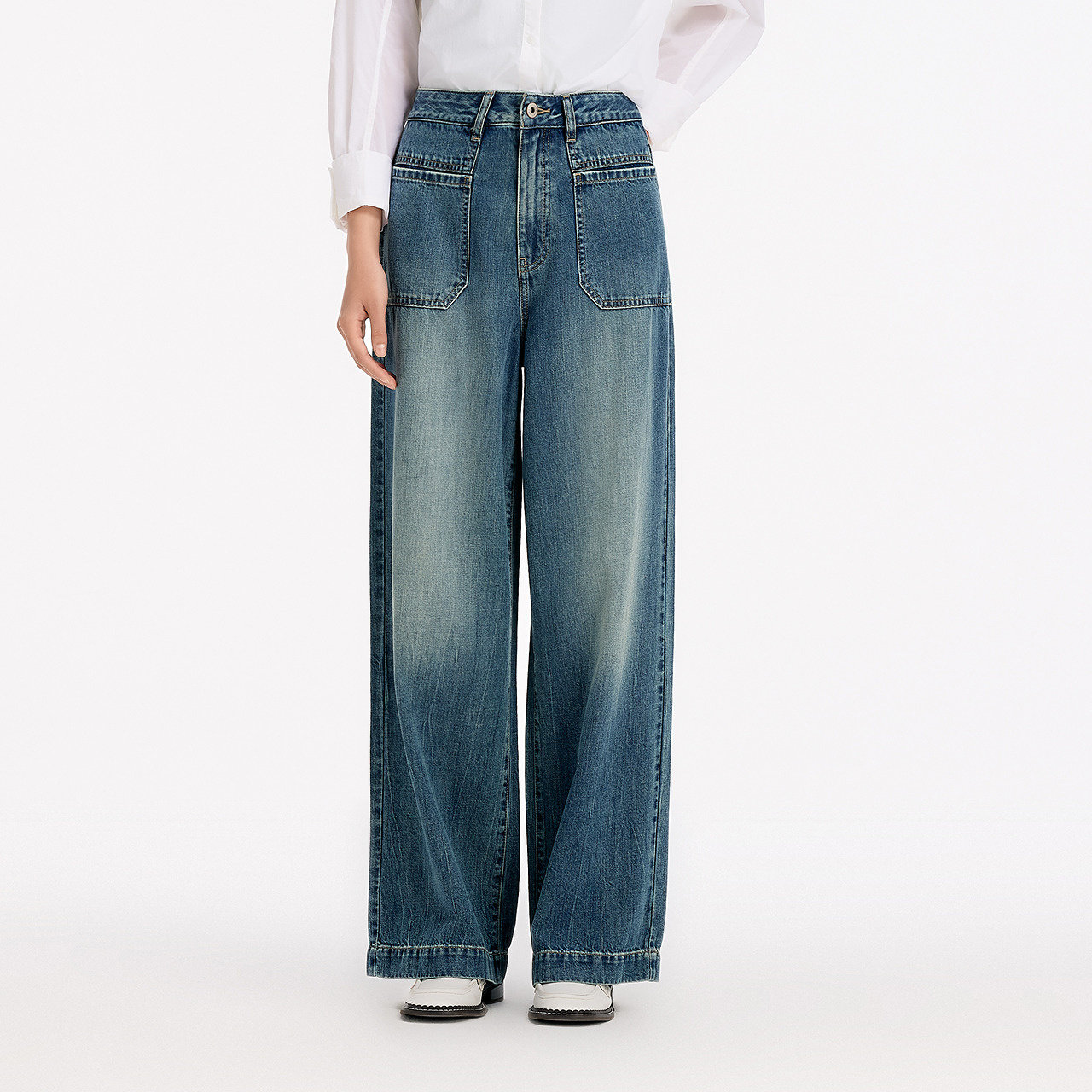 森柔牛仔|森马阔腿牛仔裤女2025秋冬白色牛仔裤简约女士高腰裤子