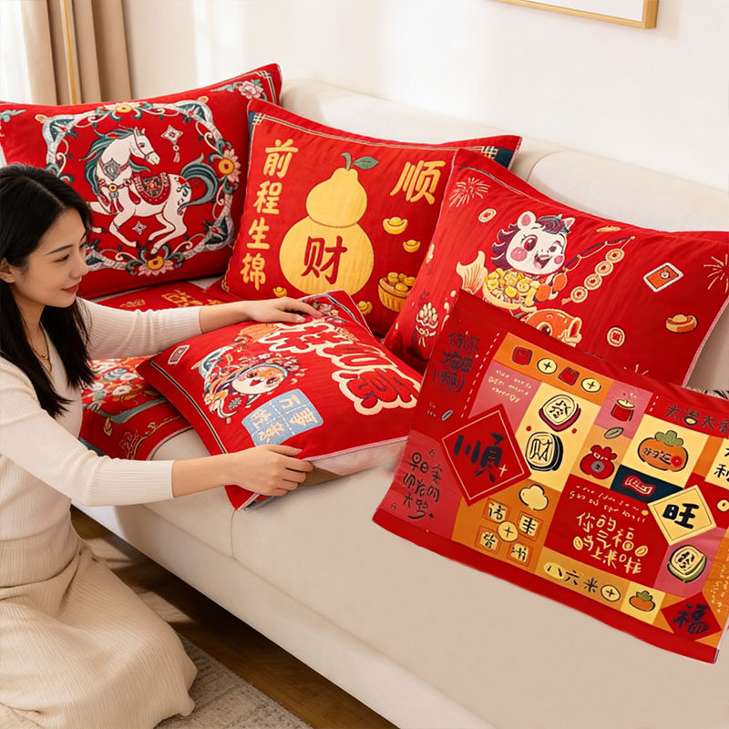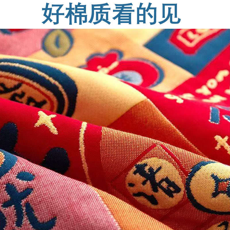 新年纯棉纱布枕巾一对装情侣喜庆枕头巾加厚全棉家用单人盖巾马年