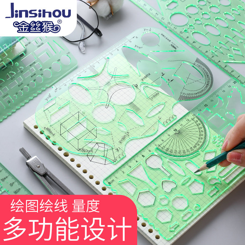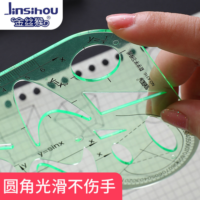 多功能函数模板尺 曲线绘图初中高中考试几何设计小学生数学画圆椭圆家具建筑画图三角电工化工模板作图文具