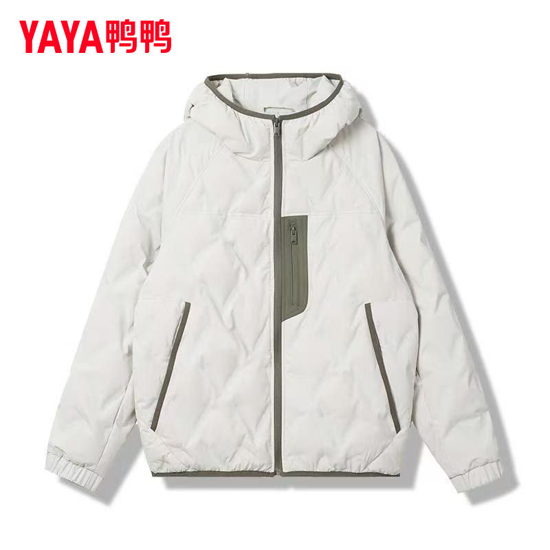 鸭鸭轻薄羽绒服男士2025年秋冬反季短款保暖休闲时尚连帽鸭绒外套