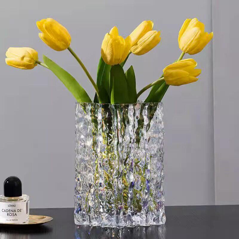 花瓶摆件客厅插花玻璃透明冰川轻奢高级感水养ins大口径网红鲜花
