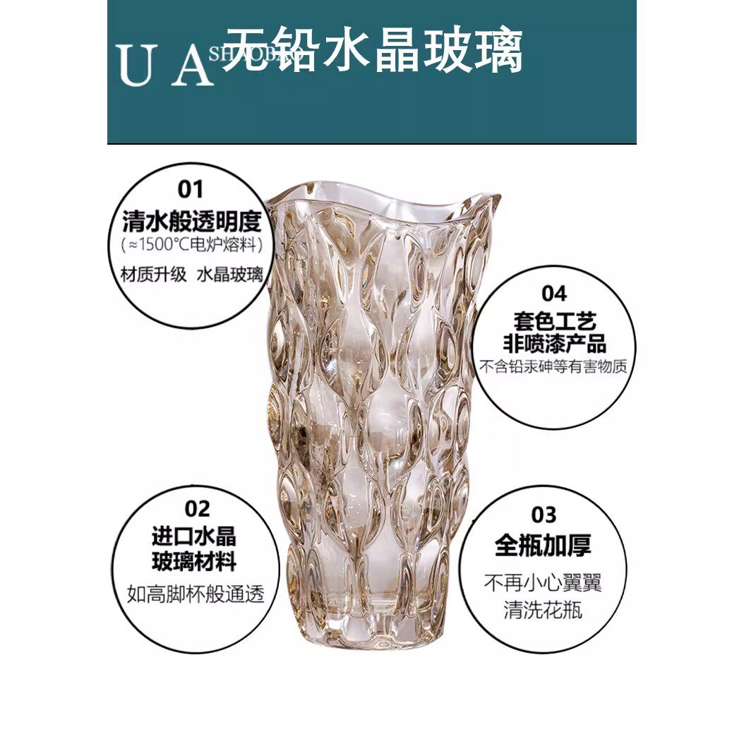花瓶摆件客厅插花轻奢水晶玻璃ins风北欧玫瑰卧室网红水养装饰品