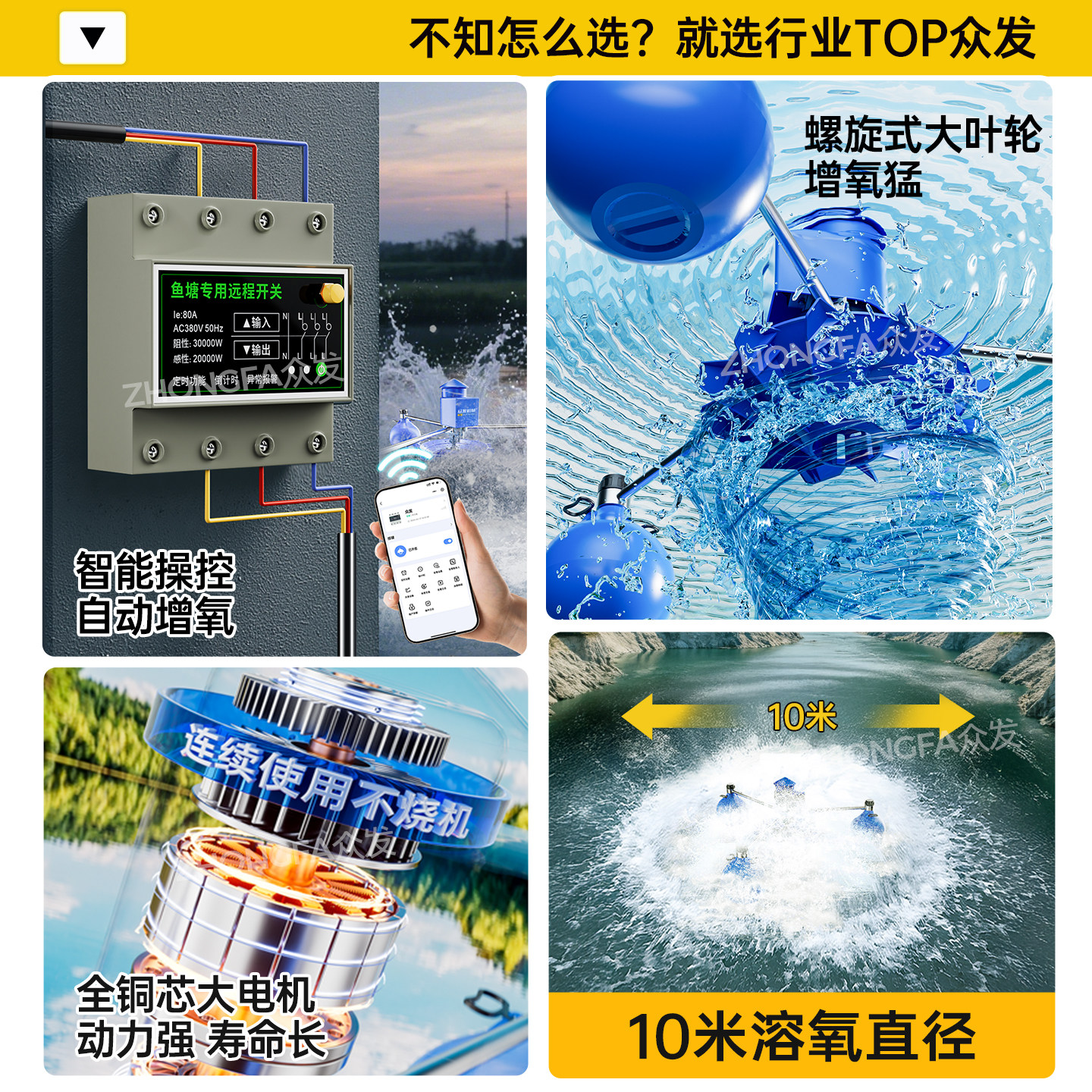 鱼塘增氧机叶轮式全自动大型水产养殖专用变频曝气浮式水泵打氧机