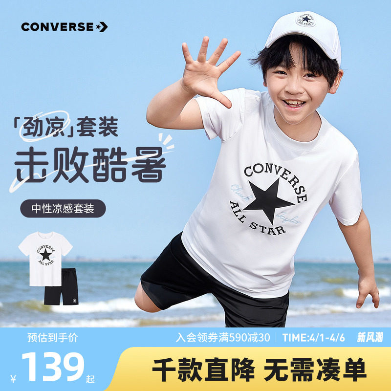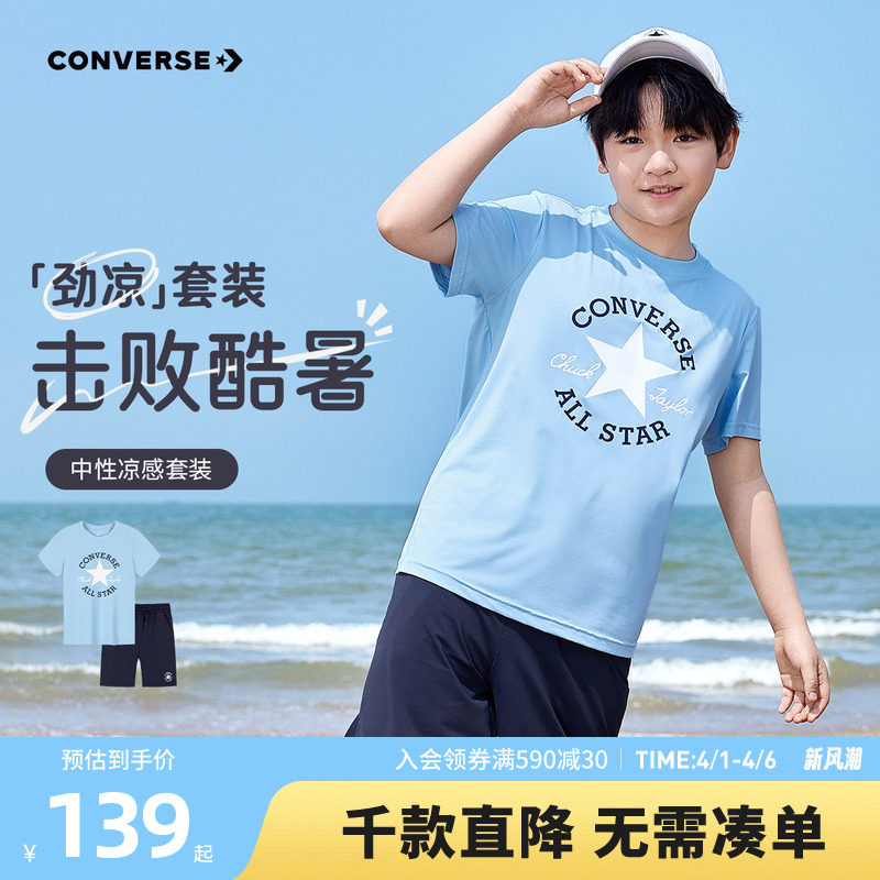 匡威童装男童套装青少年夏季中大童两件套短袖T恤短裤休闲运动