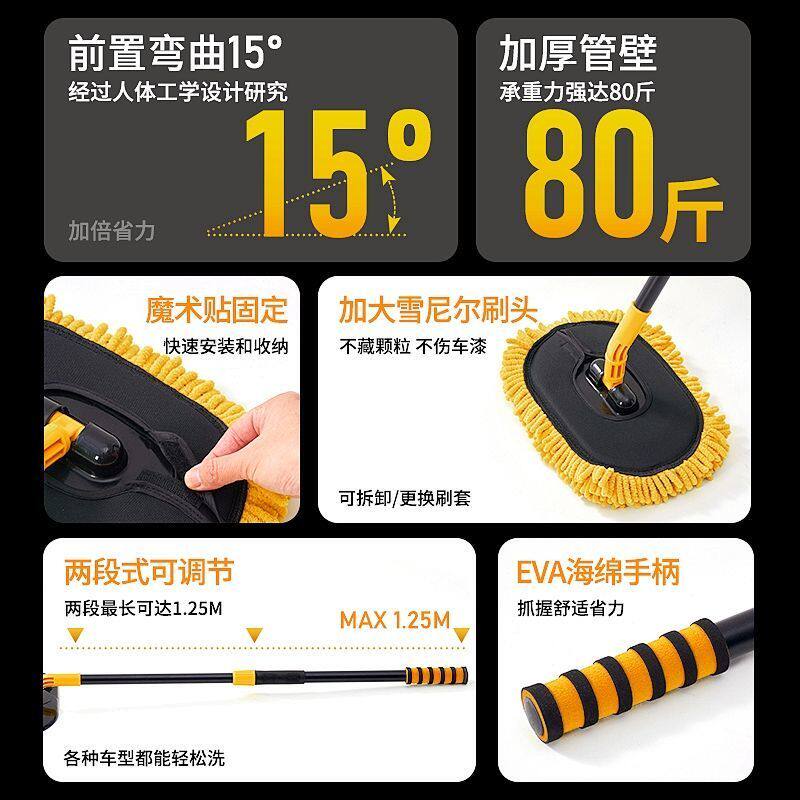 徕本弯杆洗车拖把不伤车漆软毛伸缩车用汽车刷子专用除尘掸子神器