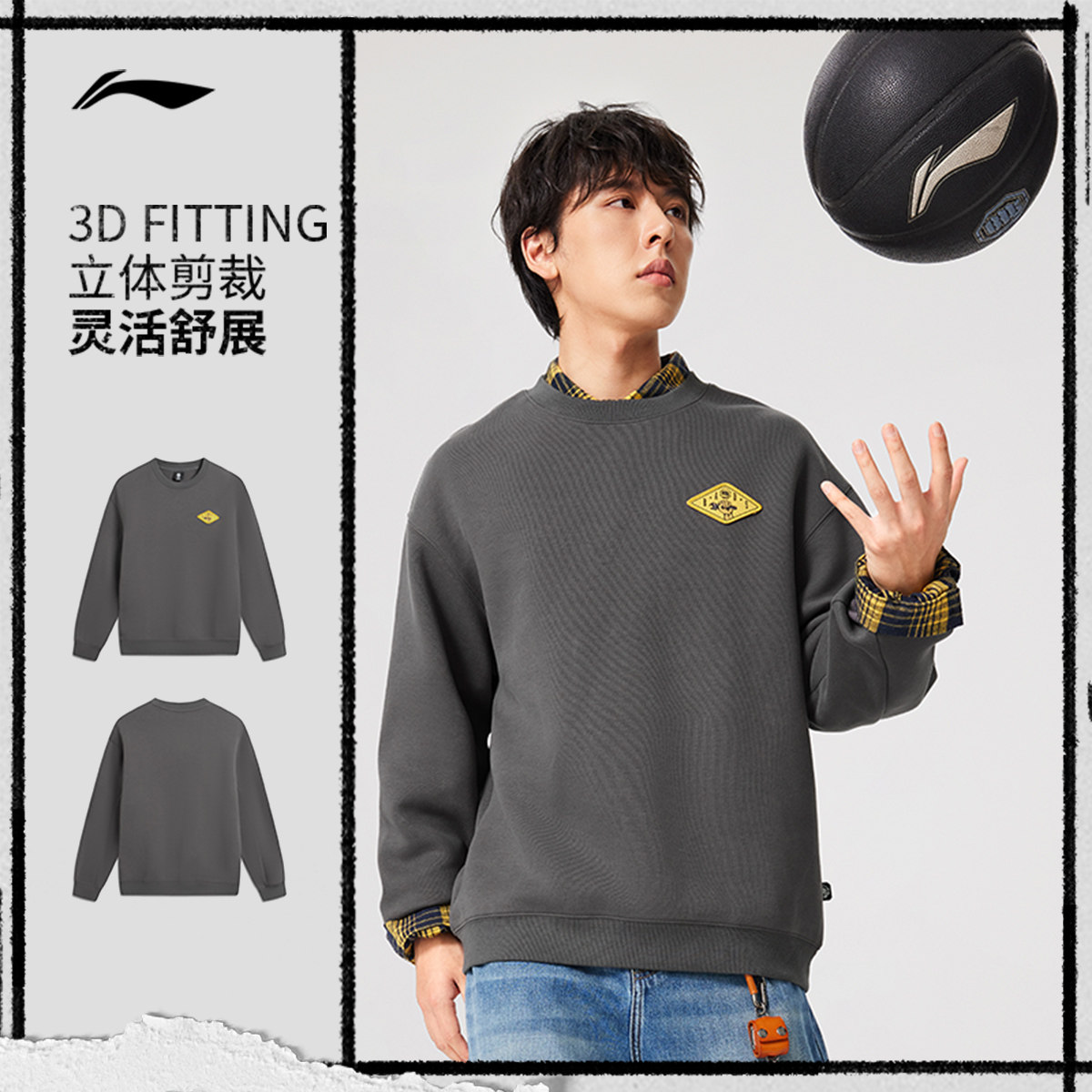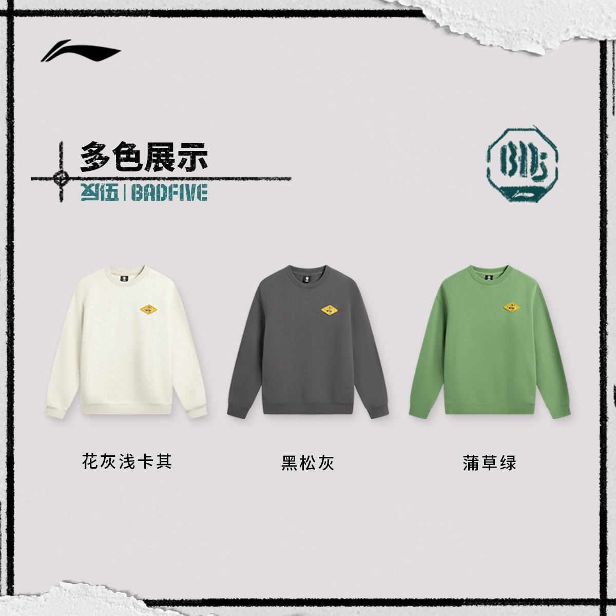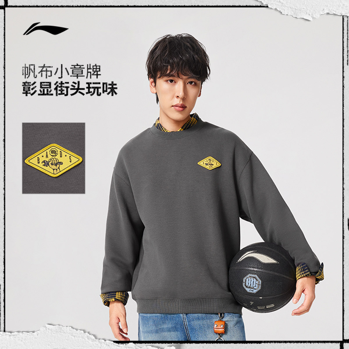 李宁反伍BADFIVE卫衣男士套头衫长袖圆领宽松春季针织运动服