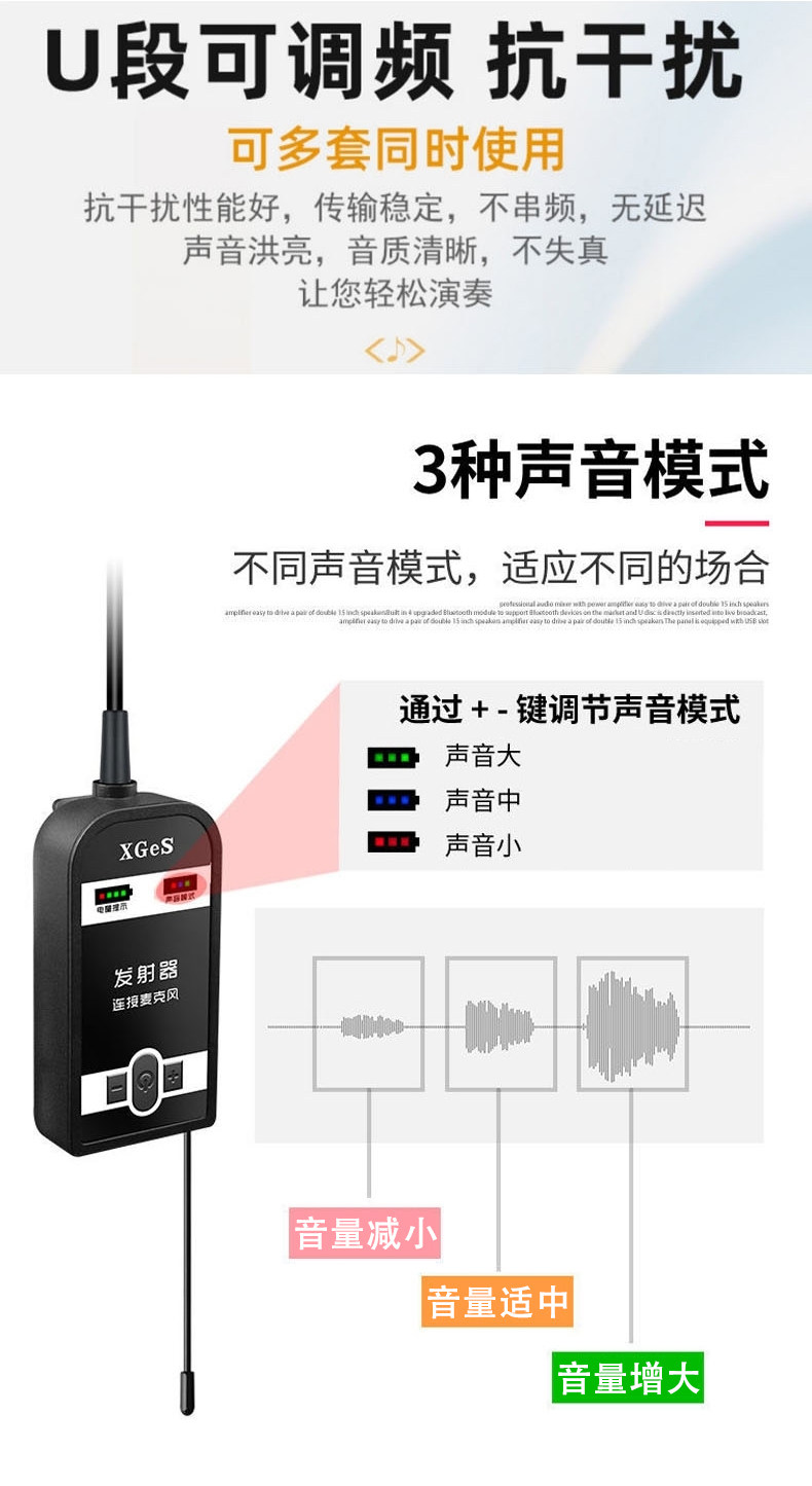 二胡无线话筒麦克风领夹式萨克斯古筝琴笛子葫芦丝乐器万能拾音器
