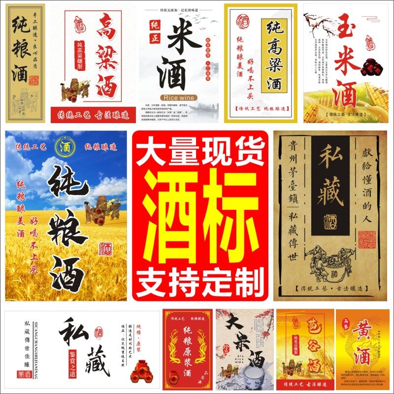 诗束 现货养生酒私藏酒不干胶标签贴纸米酒标定做白酒商标设计印刷1