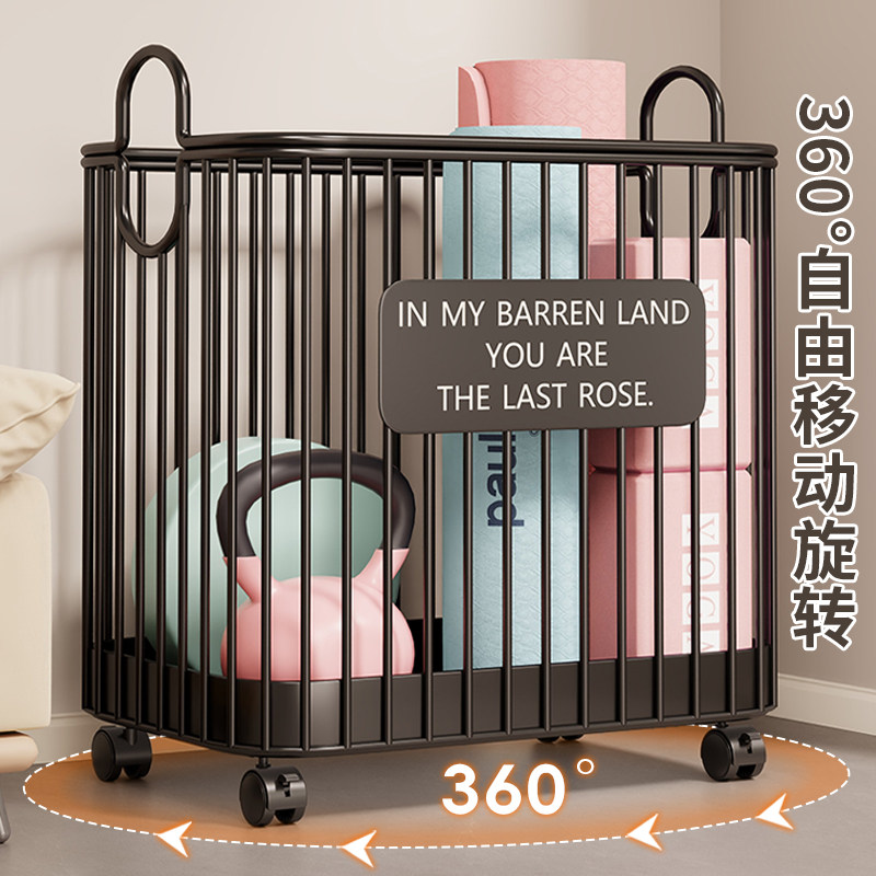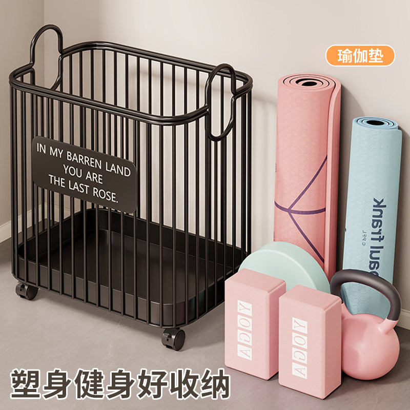瑜伽垫收纳筐家用带轮可移动储物筐大容量运动健身器材收纳神器架