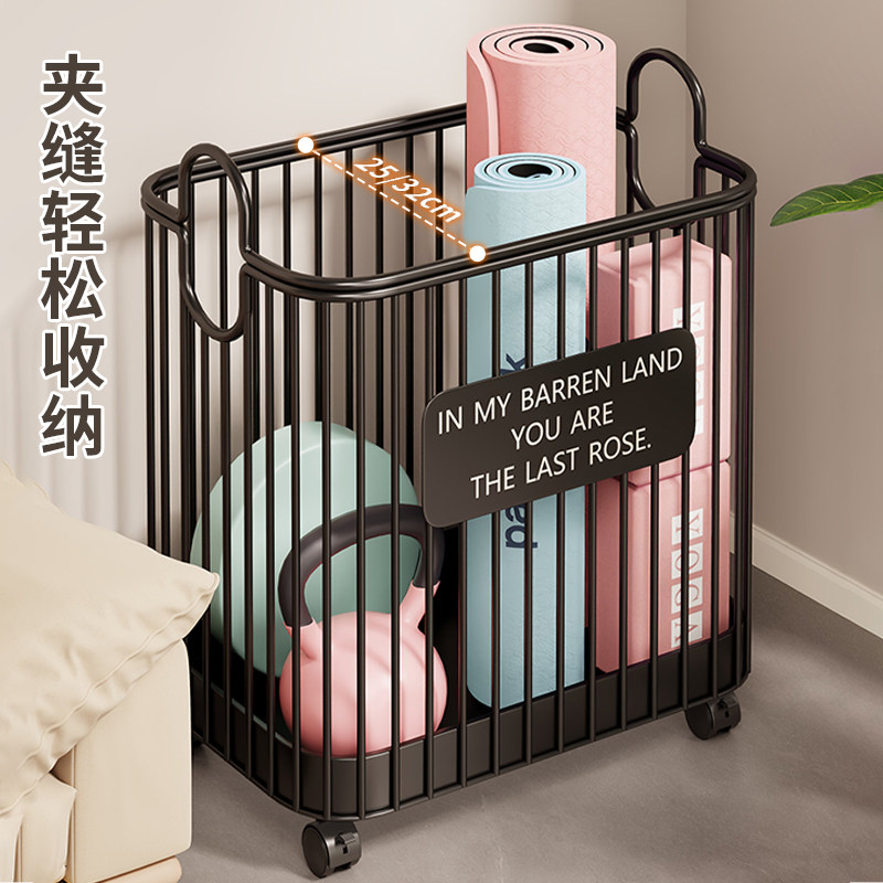 瑜伽垫收纳筐家用运动健身器材箱哑铃篮球羽毛球拍夹缝移动置物架