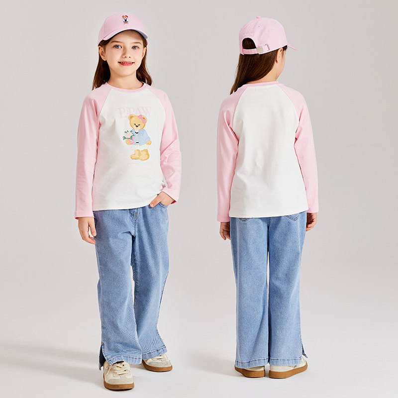PawinPaw小熊童装春夏女童贴布印花微喇牛仔长裤软牛仔