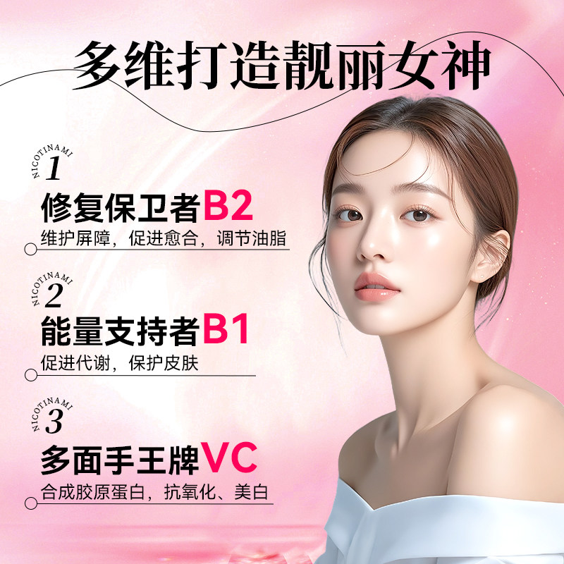 黄金搭档烟酰胺维生素cve咀嚼片美白虾青素葡萄籽官方旗舰店正品