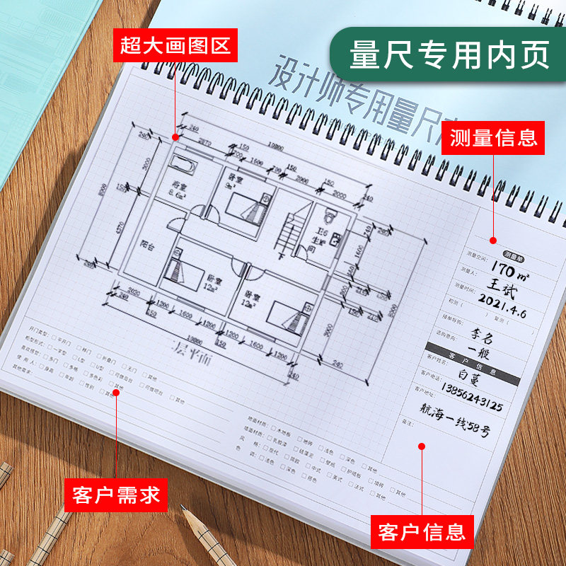 定制室内测量房A4设计师尺寸专用全屋装修绘图做记录线圈笔记本子