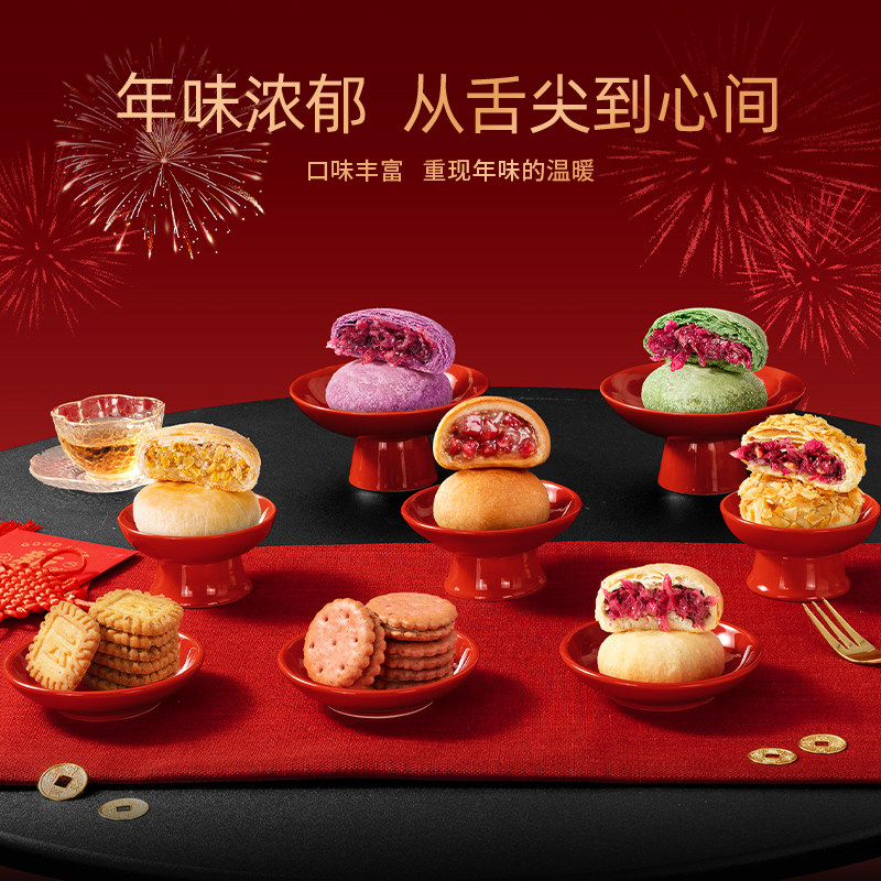潘祥记团圆礼616g鲜花饼糕点年货礼盒坚果饼干火腿酥零食大礼包