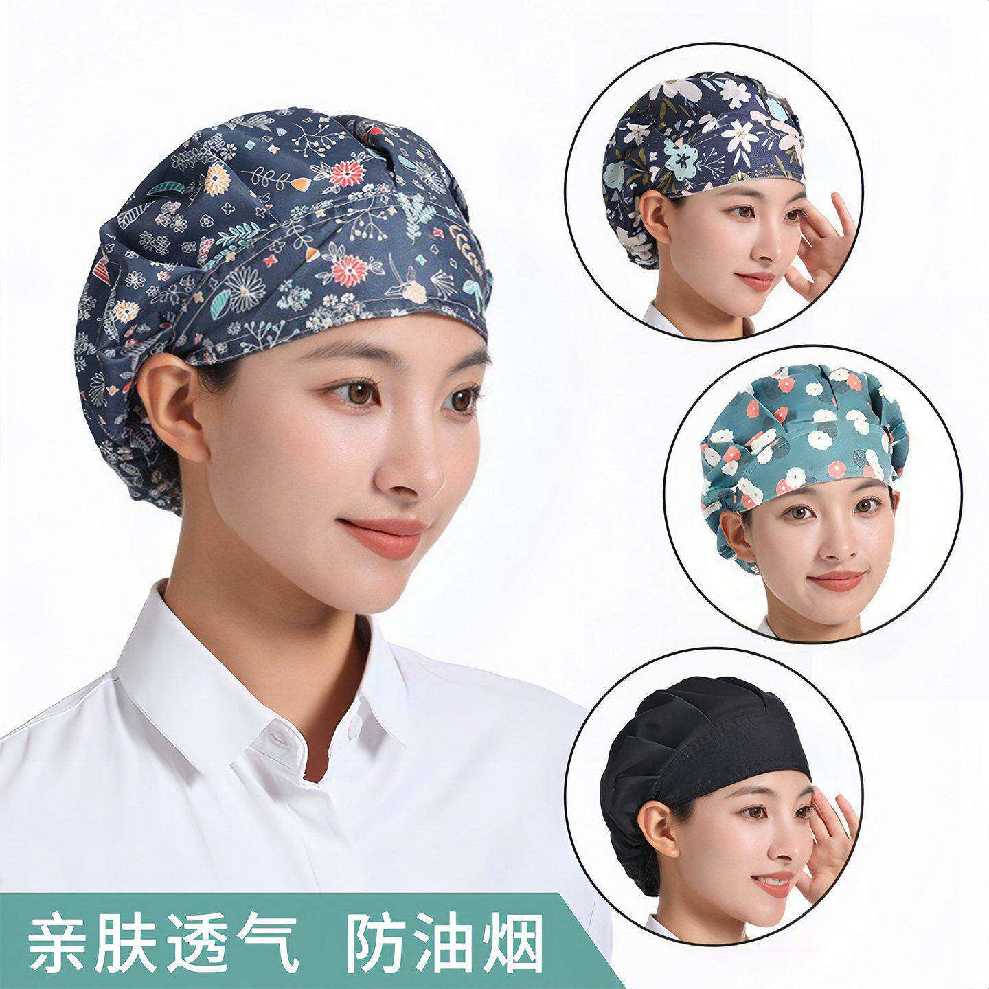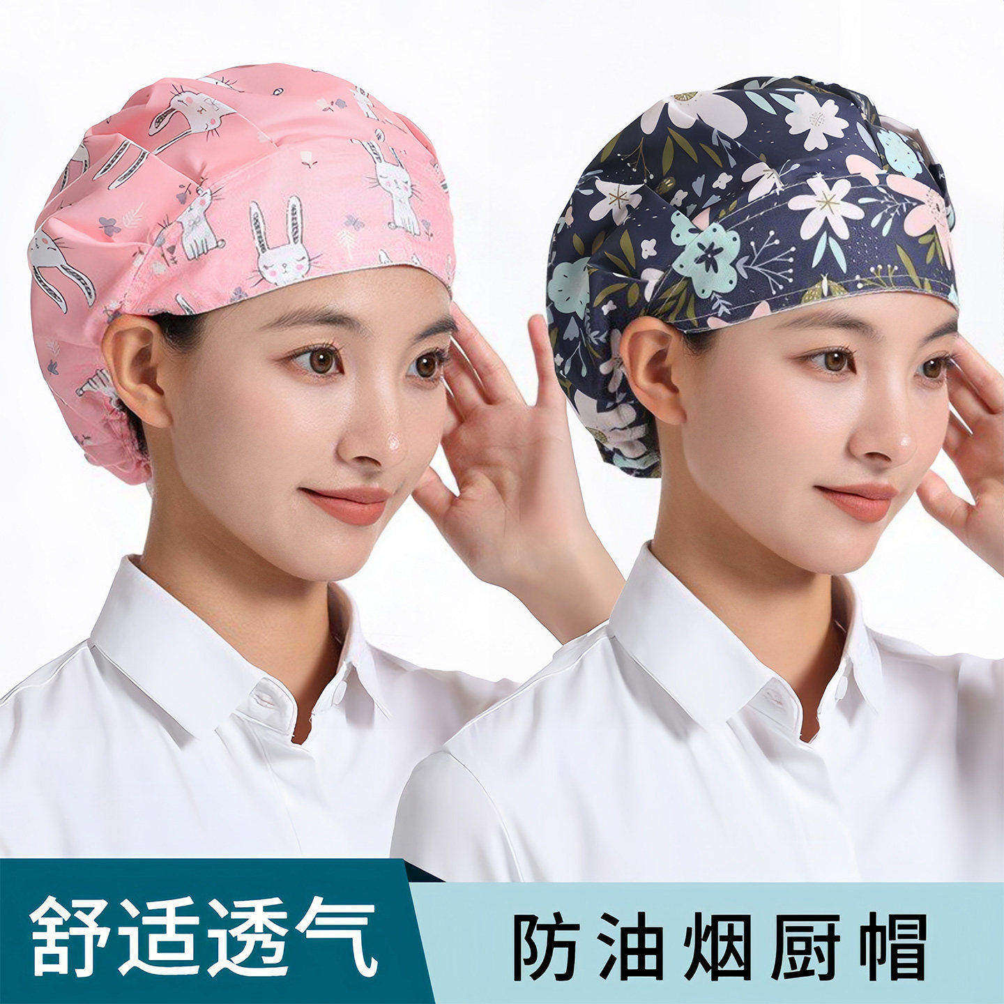 纯棉厨房帽子女防油烟做饭防掉发透气防尘松紧食品厨师帽工作帽