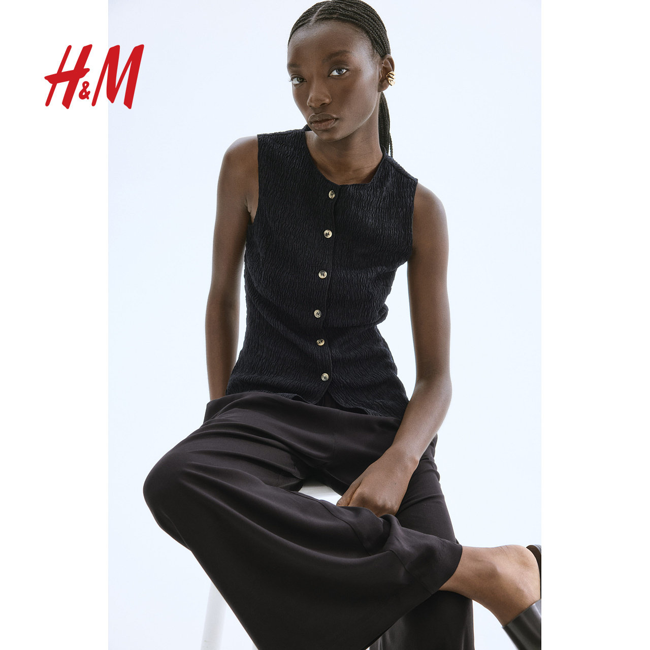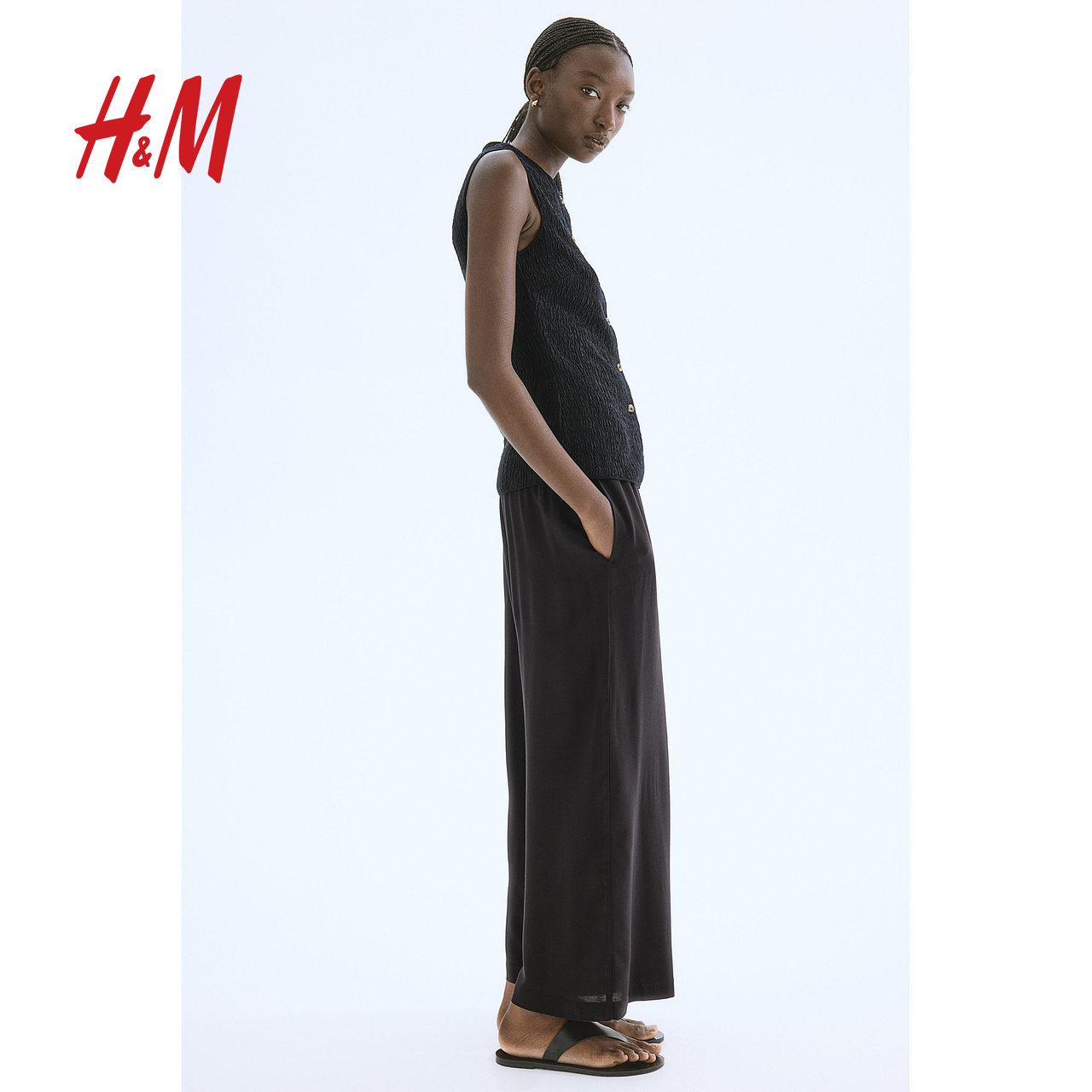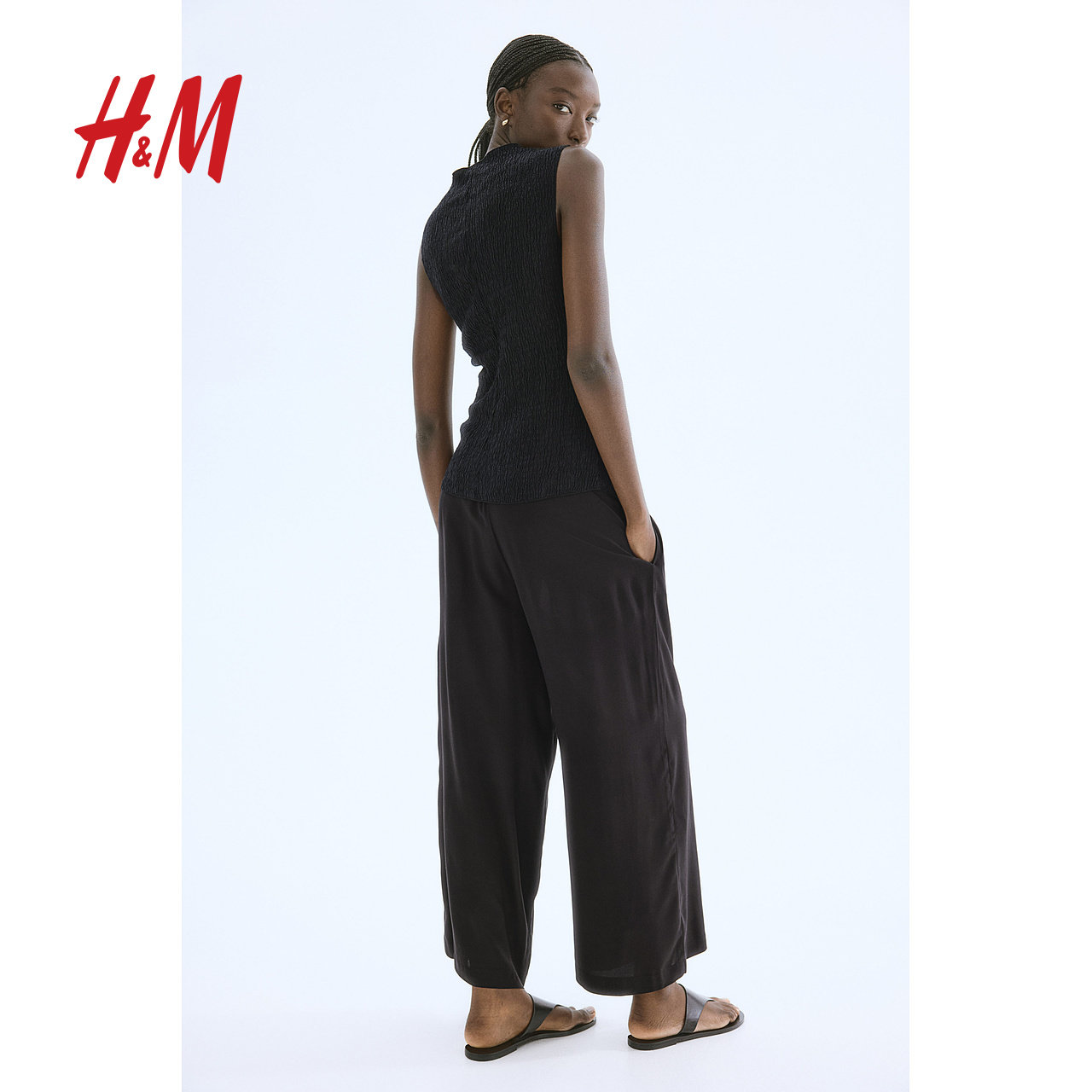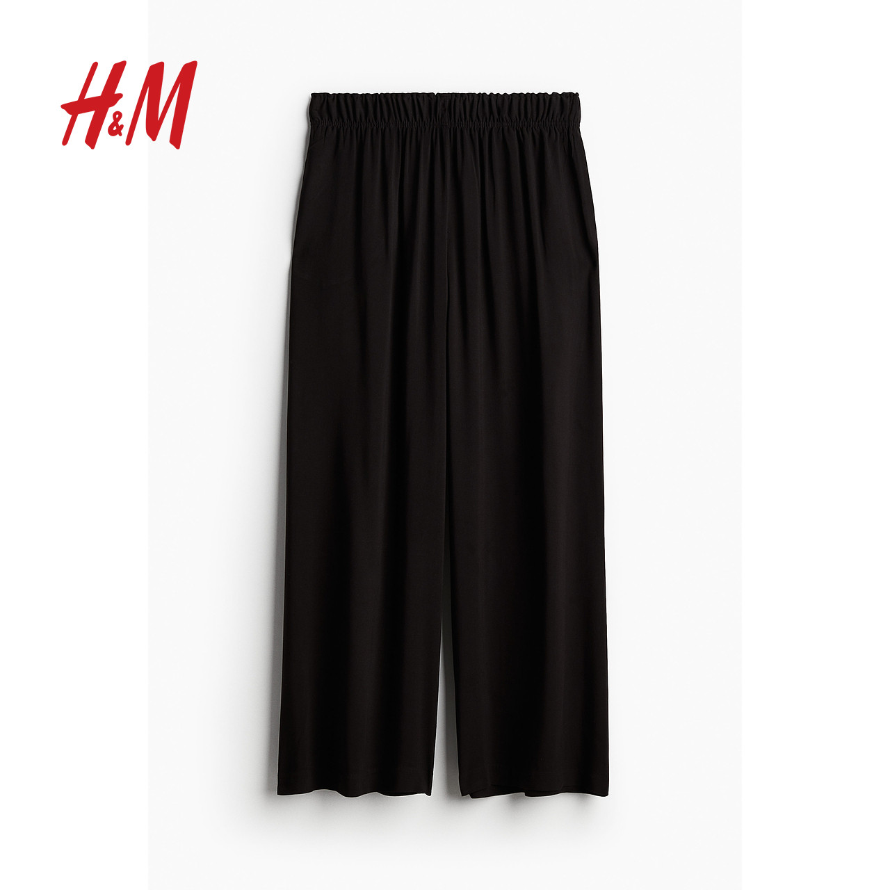 HM女装休闲裤冬季时尚休闲梭织垂坠感通勤松紧腰阔腿裤0971104