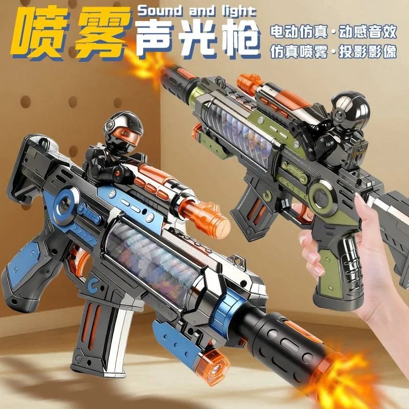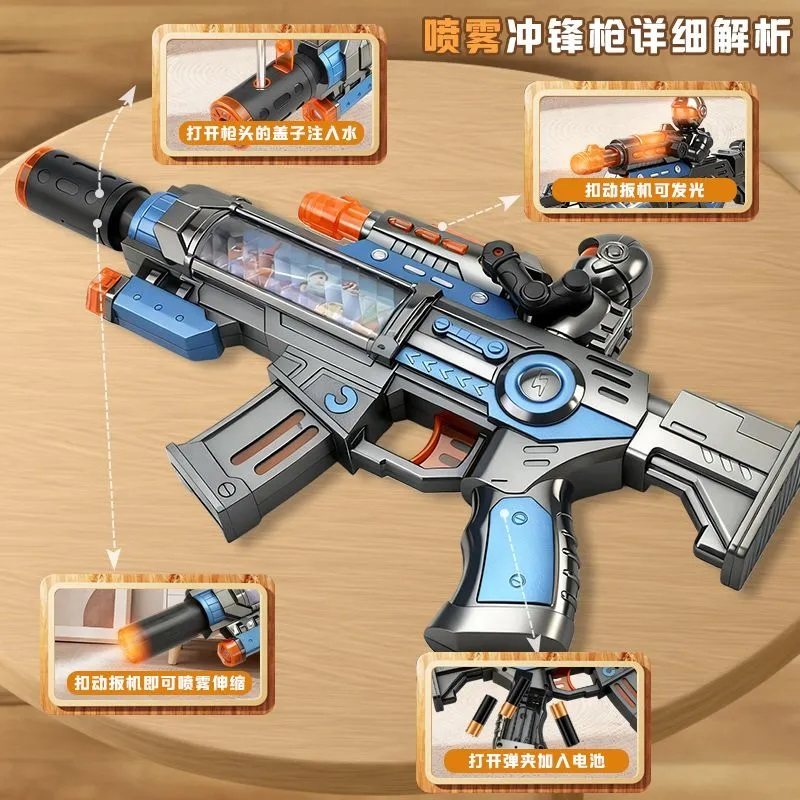 儿童电动玩具枪声玩具枪震动伸缩喷雾声光音乐仿真宝宝男孩冲锋枪