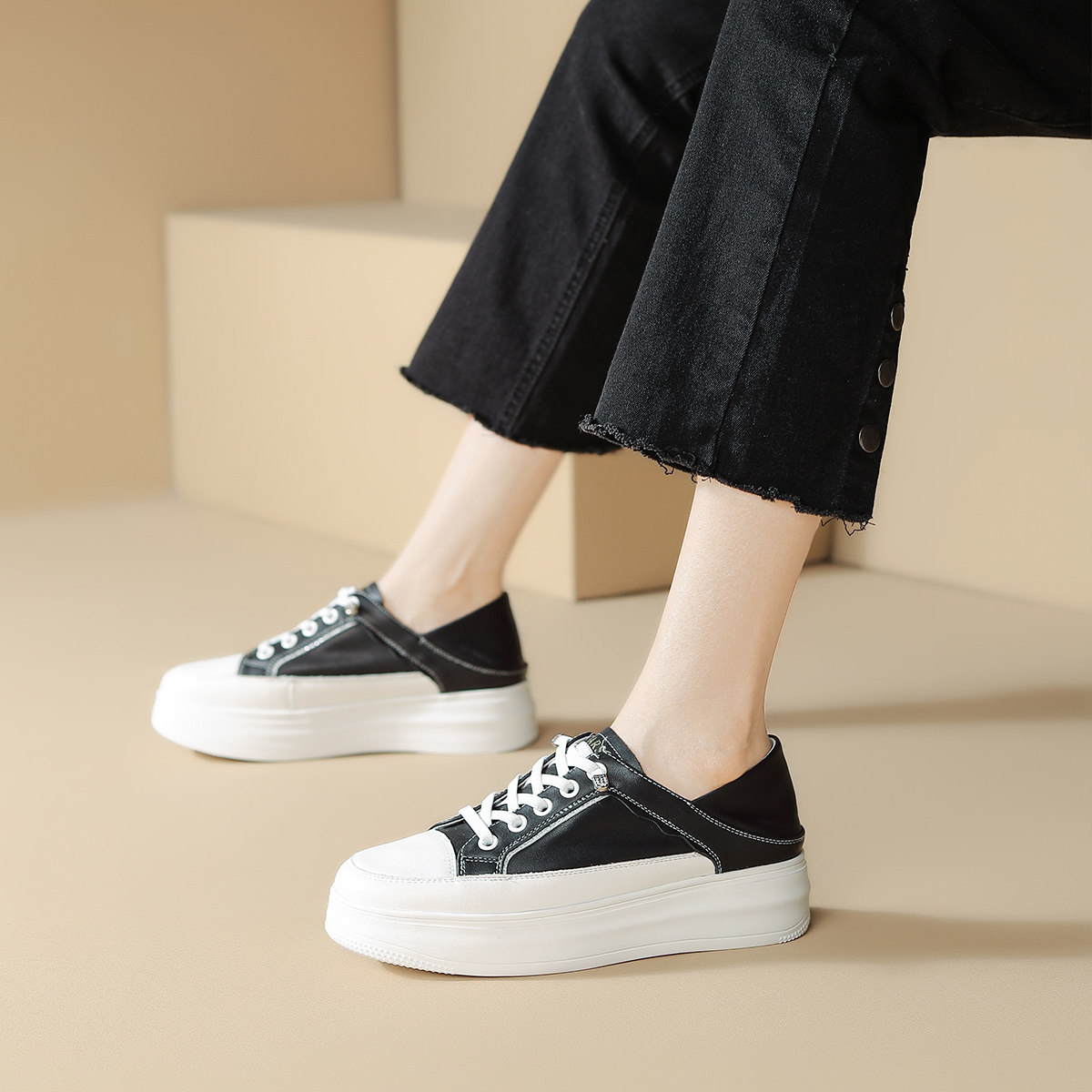 哈森头层牛皮厚底小白鞋女2025夏季新款两穿休闲一脚蹬懒人女鞋子