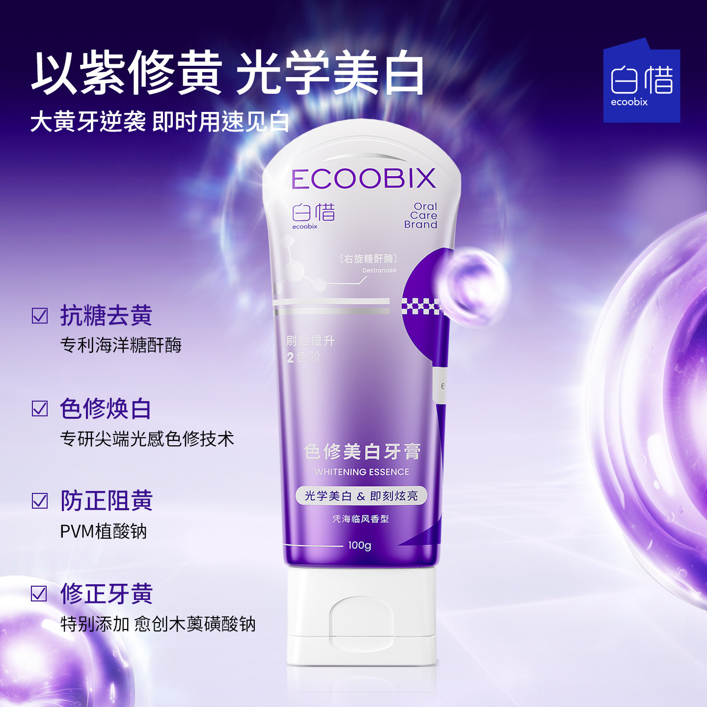 【肖战同款】舒客色修白牙膏美白冷光蓝紫色去黄清新口气旗舰正品